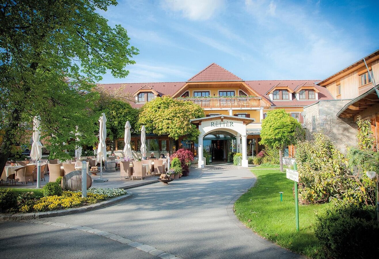 - Wir wandern vom Retter Bio-Natur-Resort entlang der Parkplätze des Hotels die Straße hinunter am Abfallsammelzentrum vorbei.