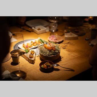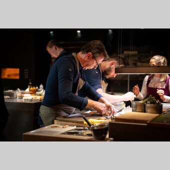 - Armin Tement, Gerhard Dragschitz (motioncooking), Heinz und Birgit Reitbauer, Monika Tement, Nino Sifkovits, Cheyenne Ochsenknecht und STG-GF Michael Feiertag im Rahmen der Guide-Michelin-Pressereise im Steirereck am Pogusch