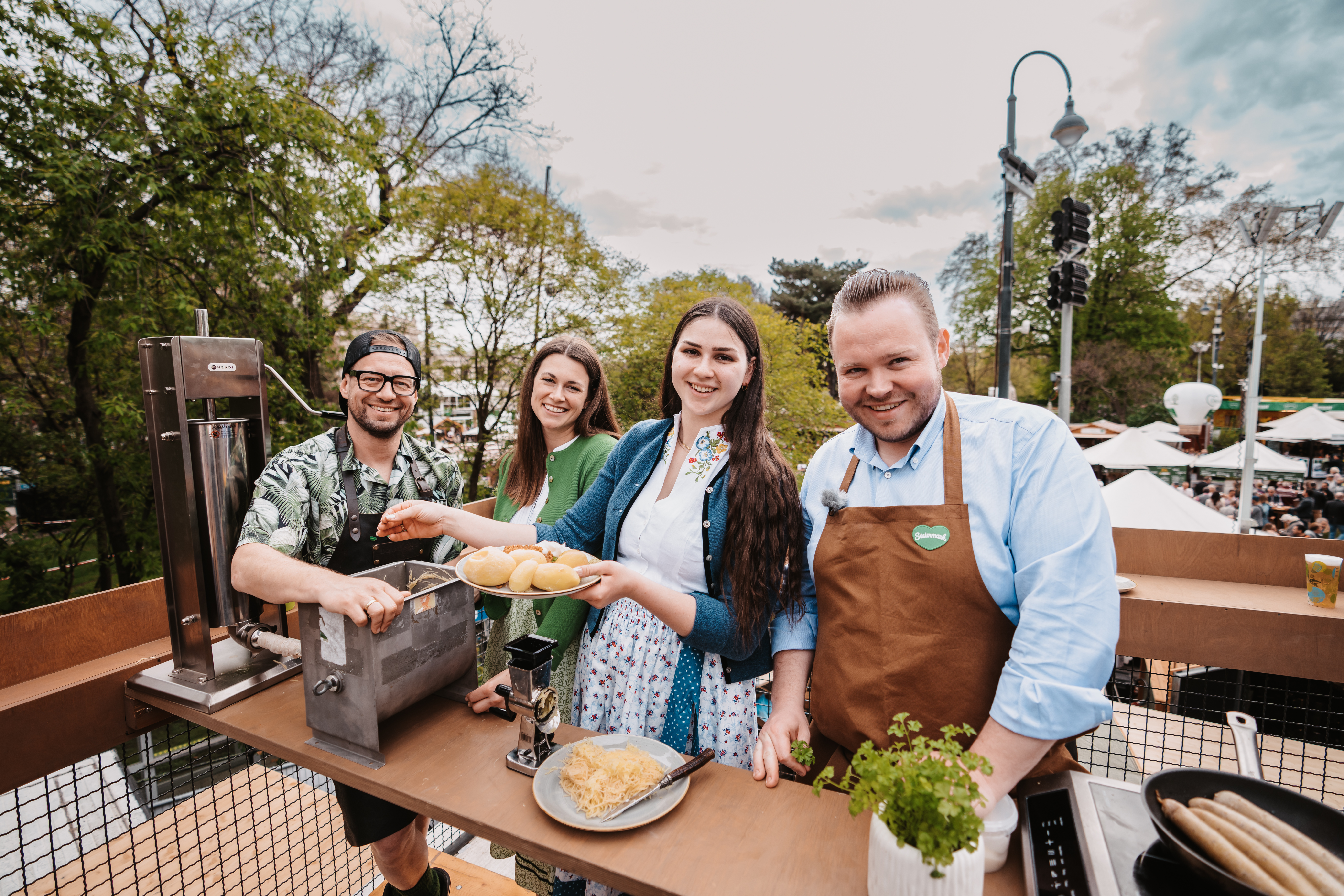 -Herz der Steirischen Apfelstraße auf den Platz. Stückweise verkauft, geht der Erlös an das St. Anna Kinderspital. Gleich danach wird im Oststeirischen Kochstudio echt-Genusshandwerk Jan Aigner aufkochen: Erdäpfelnudeln mit Weizer Schafsbrimsen und Bärlauch. Beim Steiermark- Quiz und Gewinnspiel spielen ungewöhnliche Musikanten: Die Geschwister Lugitsch werden als „Styrian Earfors“ mit Steirischer Harmonika und Horn die Volksmusik neu interpretieren.