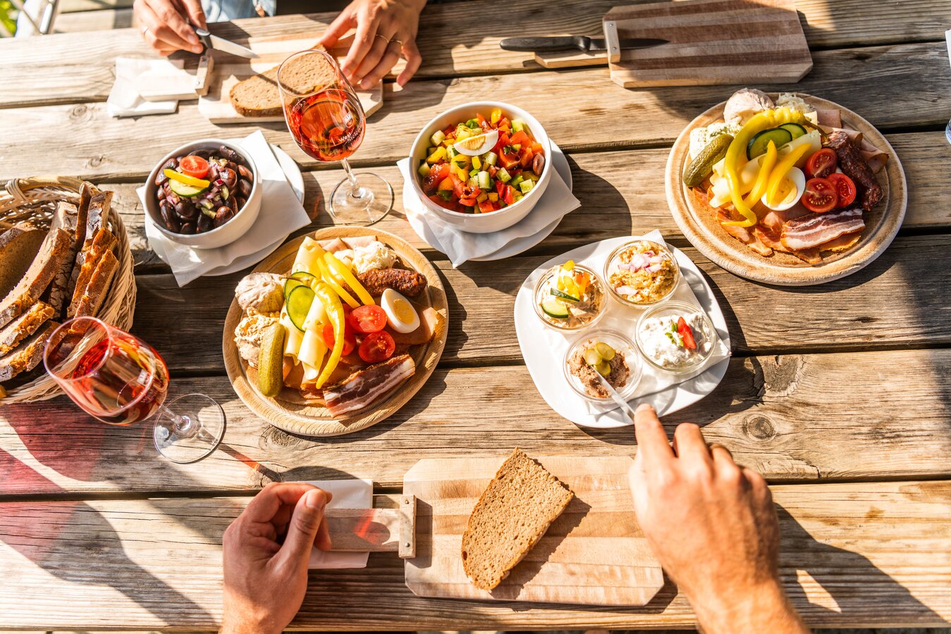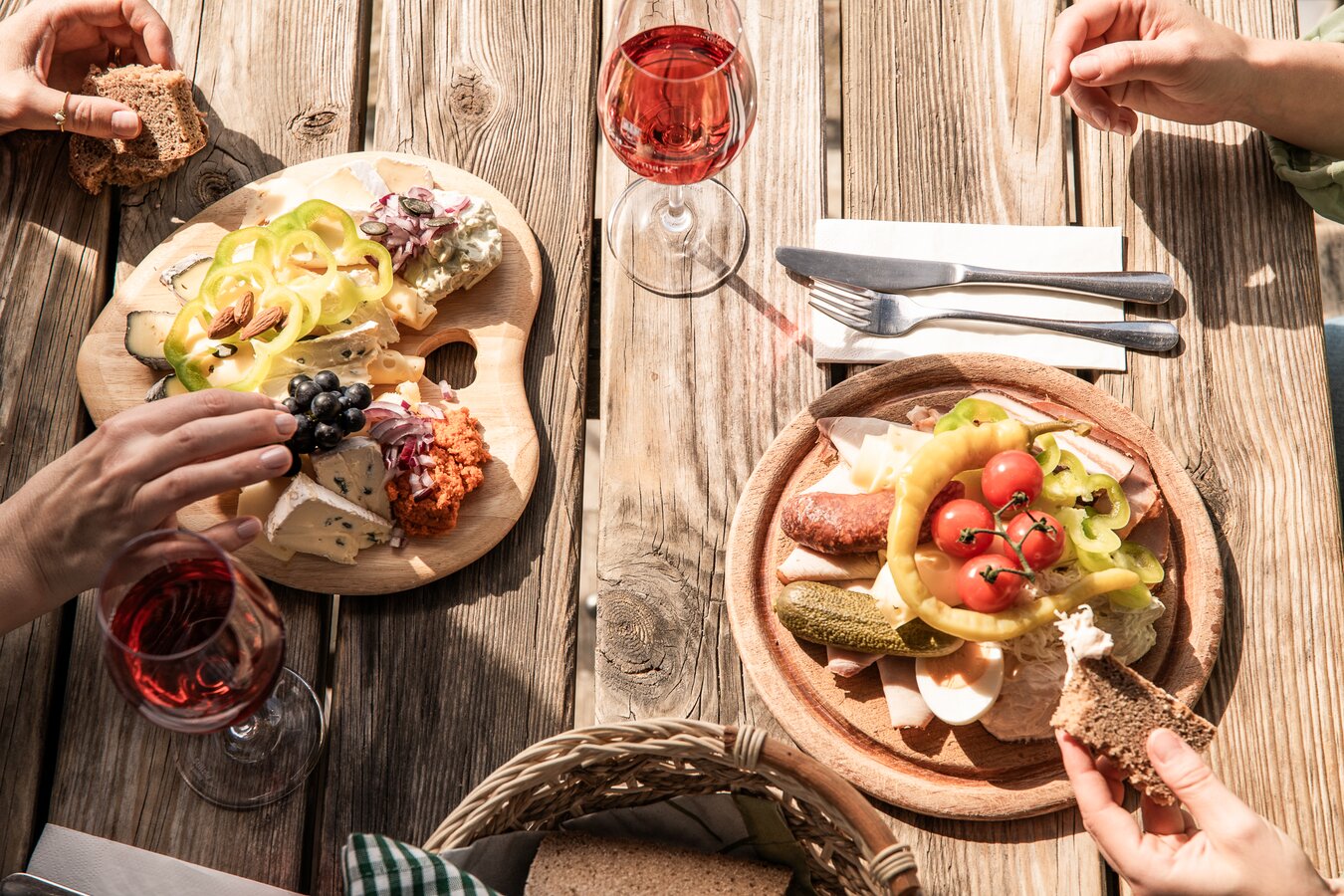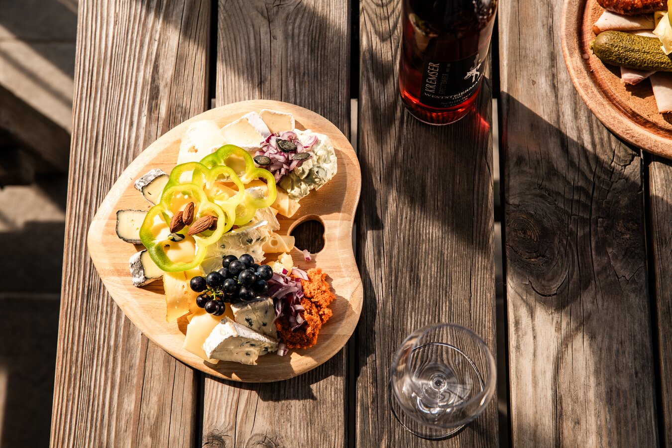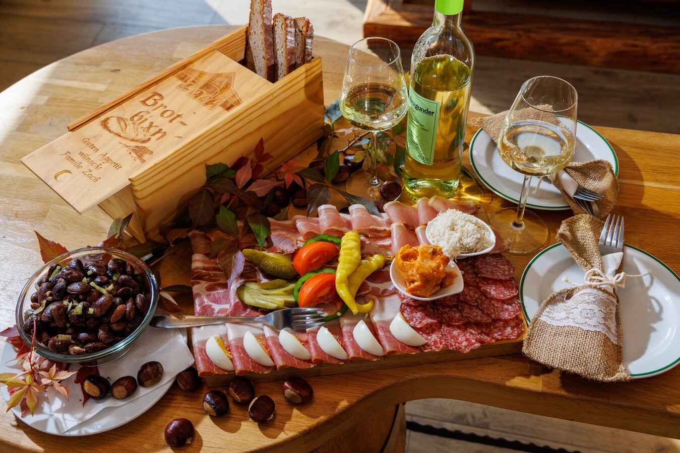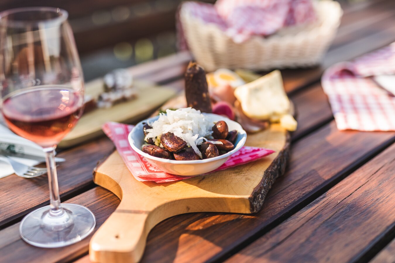 Von der klassischen Brettljause mit herzhaftem Speck, Käferbohnen und würzigem Steirerkas bis hin zu frischen Aufstrichen, Bauernbrot und selbstgemachten Mehlspeisen – bei einem Besuch in der Buschenschank schmeckt man die Steiermark. Dazu gibt es handverlesene Weiß- und Rotweine, allen voran Welschriesling, Weißburgunder oder der steirische Klassiker: der Schilcher