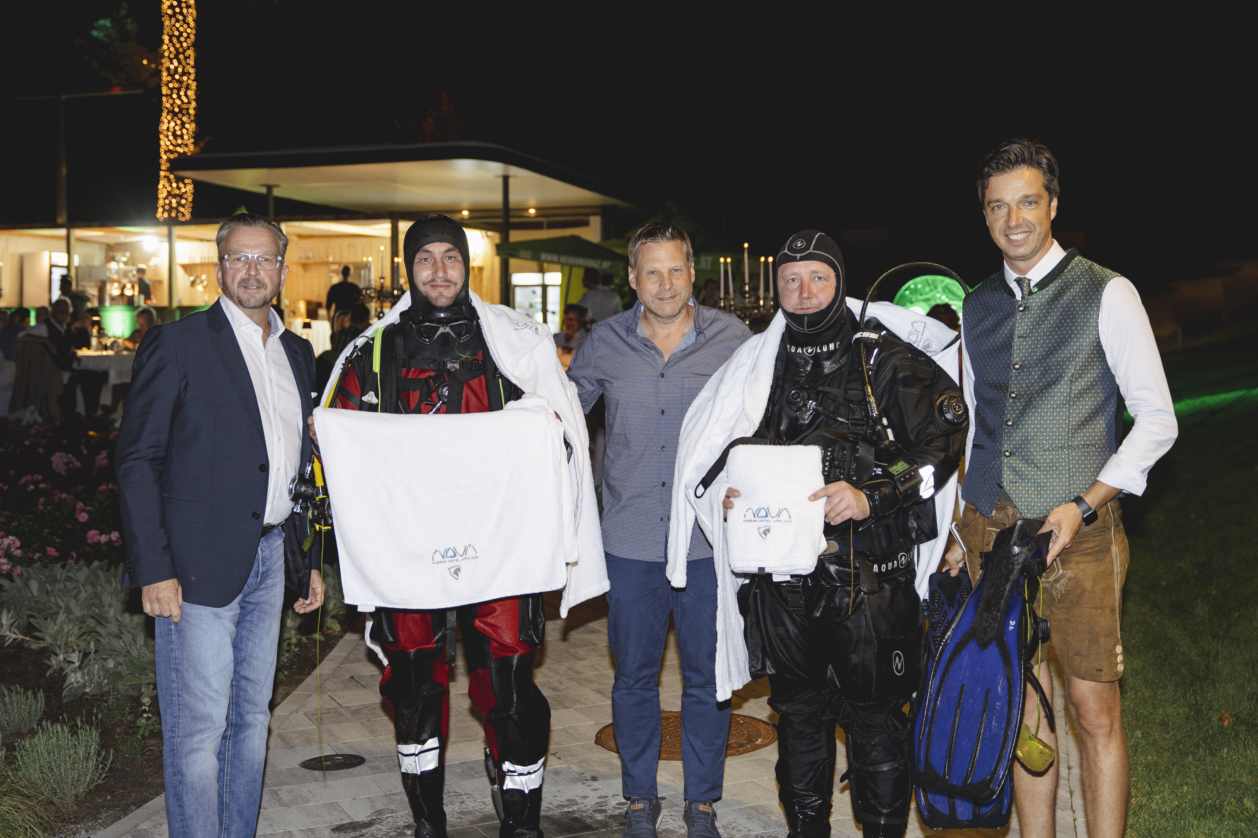 Die dritte Veranstaltung der Kulinarikreihe „Vollmund“ der Erlebnisregion Graz hatte am Dechantteich in Köflach am Dienstag, 20. August, einige ganz besondere Highlights zu bieten: Am späteren Abend sorgten Taucher der freiwilligen Feuerwehr Maria Lankowitz für eine spektakuläre Überraschung, als sie mit einer Schatzkiste aus dem Seerosenteich stiegen.