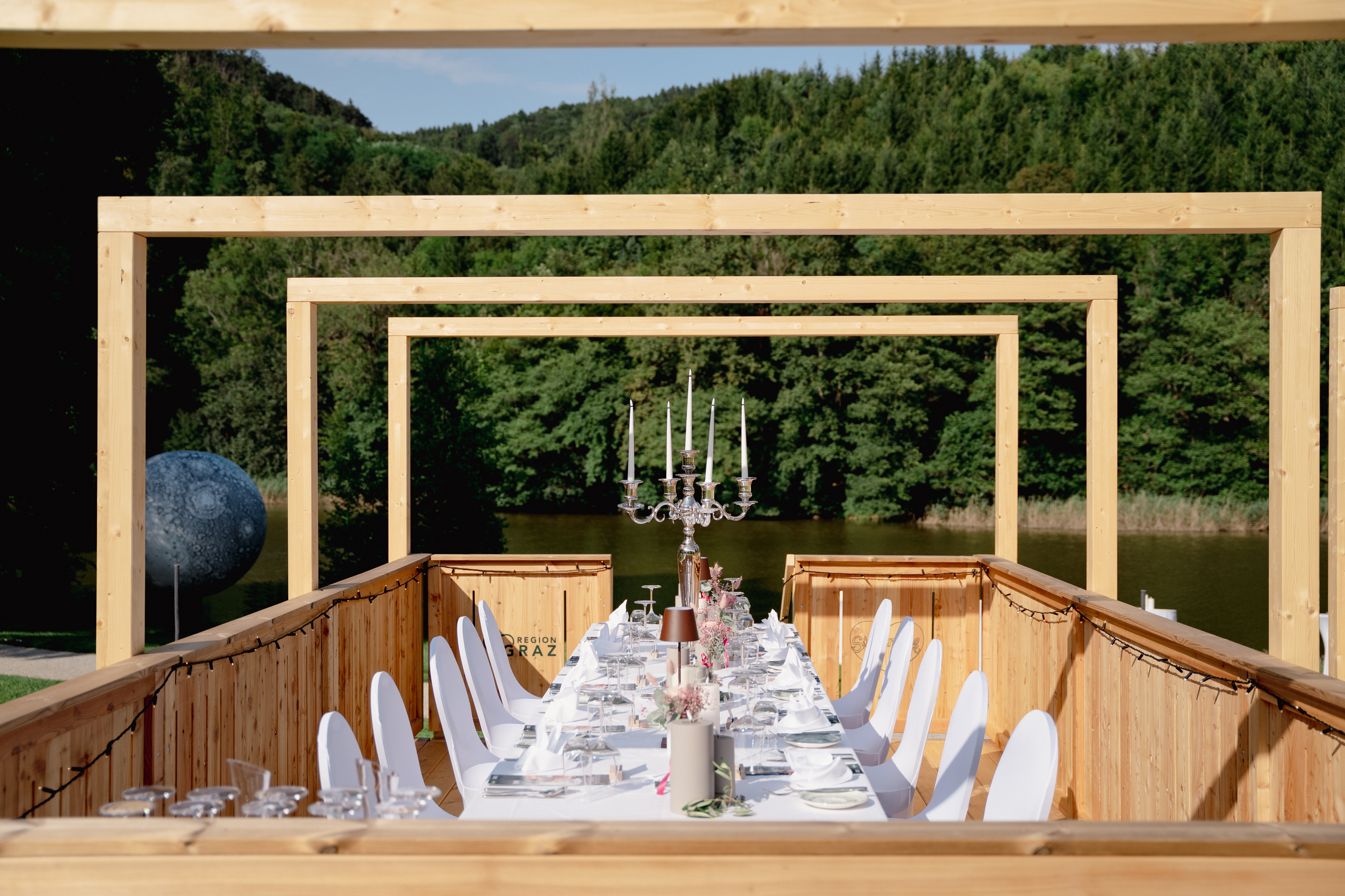 Dieses einzigartige Zusammenspiel verschiedenster Akteure – Top-Gastronomen, Produzenten, Winzer, Kunstschaffende über die Veranstaltungsagenturen bis hin zu den Tourismusschulen Bad Gleichenberg uvm. hat wieder perfekt funktioniert und für ein unvergessliches Erlebnis mit zufriedenen Gästen gesorgt. Nicht unerwähnt darf hier die Unterstützung der Marktgemeinde Thal durch Bürgermeister Matthias Brunner sowie Vizebürgermeisterin Gerhild Langmann bleiben – ob beim Transport des Essens mit dem Tretboot, in der Betreuung der Gäste oder beim Anrichten der Speisen – hier wird nicht nur mit Muskelkraft, sondern auch mit viel Herzblut zusammengearbeitet!