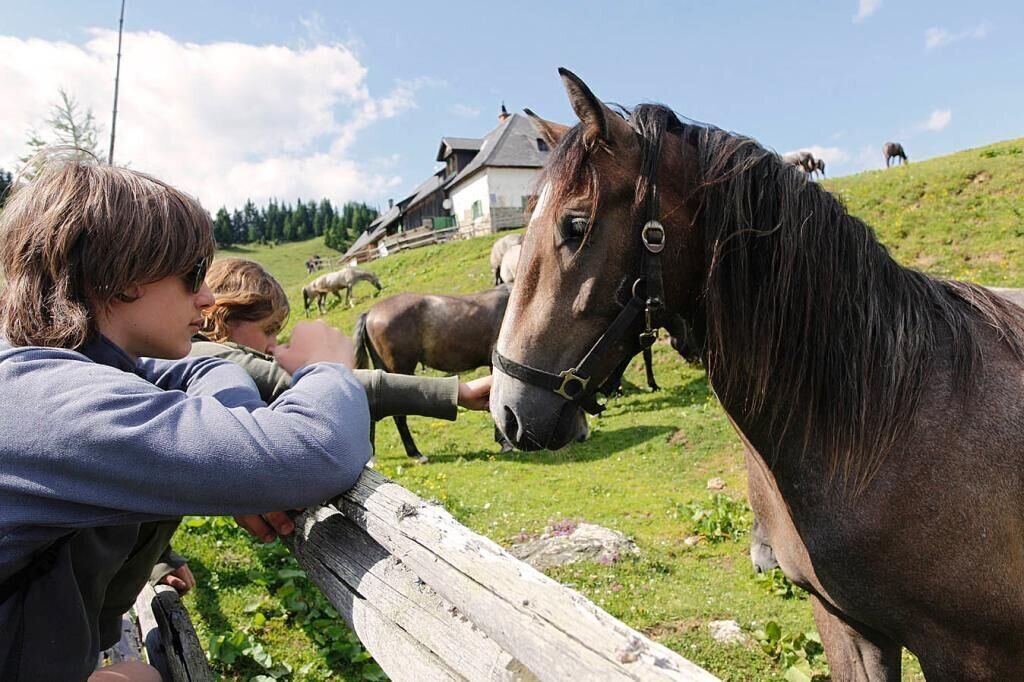 ACHTUNG: Der Weg kann hier zwischendurch etwas verwachsen sein). Wir marschieren nun etwas langsamer weiter, denn der Weg steigt merklich an. Wir erreichen, nachdem wir einen Wald durchwandert haben, das Soldatenhaus, wo in den Sommermonaten die Junghengste der Lipizzaner untergebracht sind. Hier können wir von Anfang Juni bis Mitte September täglich um 17:00 Uhr auch Führungen machen.