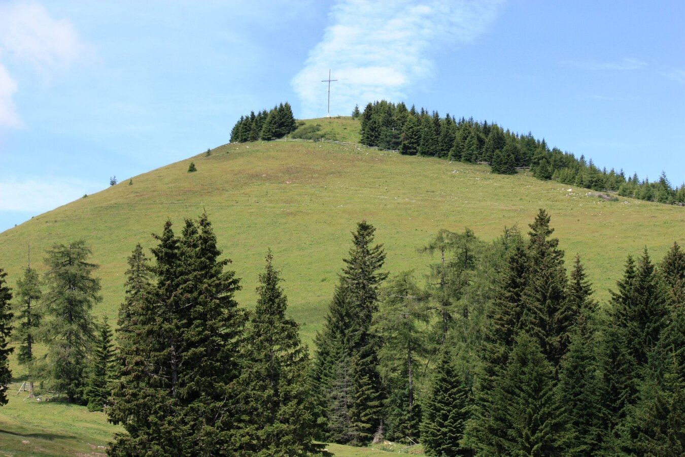 Hinauf wandern wir entlang des Wanderweges Nr. 51, der über Kirchberg und Buchwald bis nach Bundschuh führt. Aber hier geht’s dann am Erzherzog-Johann-Wanderweg (Nr. 546) weiter, der uns über das Soldatenhaus verlaufend bis zum Alten Almhaus bringt.