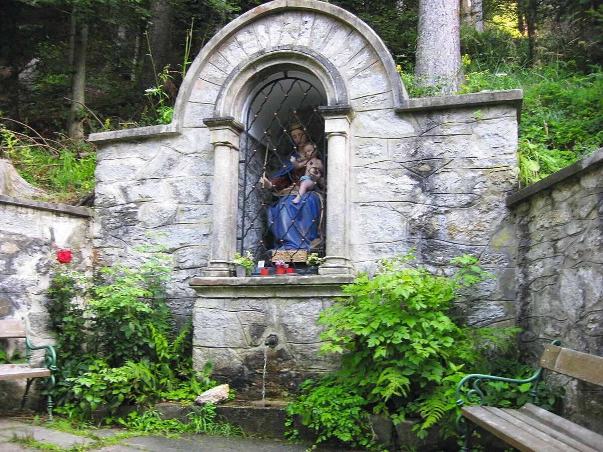 Danach geht es weiter bergauf zur Hubertuskapelle und der Novy Quelle. Es folgt ein letzer Anstieg zur Albertinen Quelle, bevor ein längerer gemütlicher Abschnitt bis zur Schindler Quelle mit seiner Mantra Mühle geht.