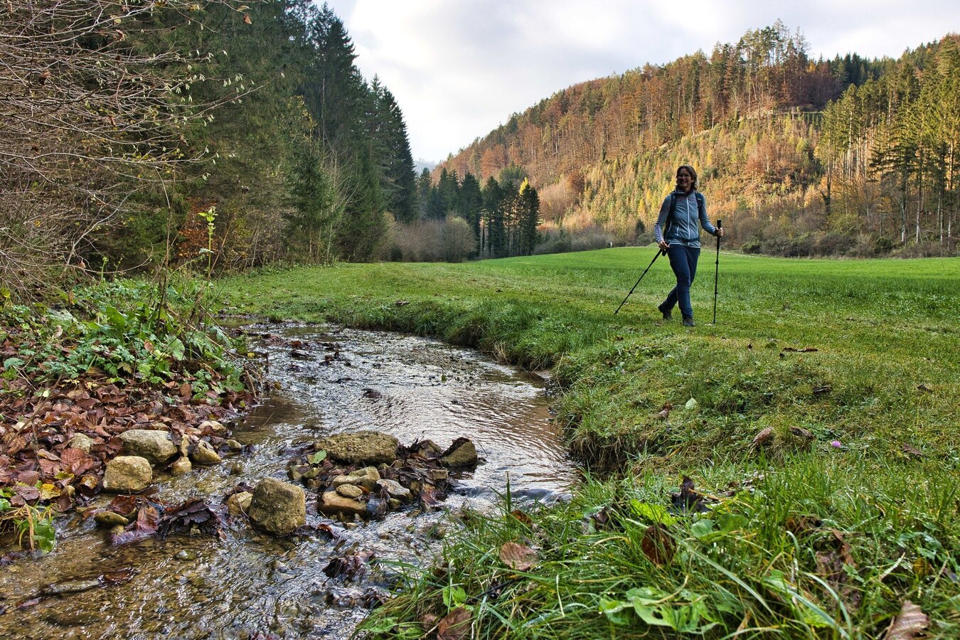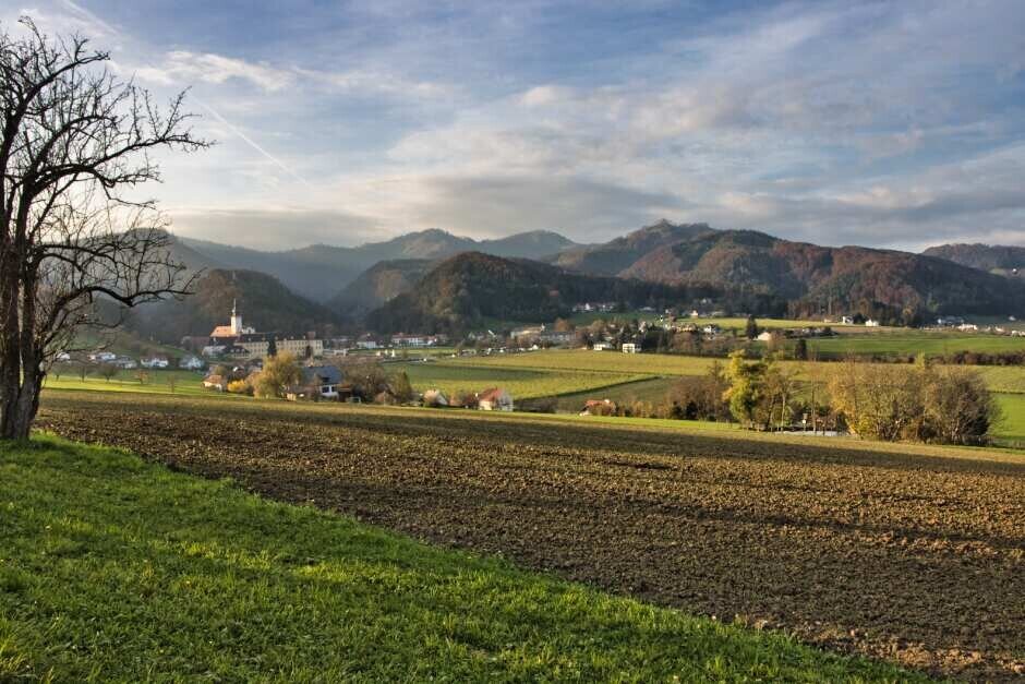 Mit Kleinstübing als Ausgangspunkt dieser Streckenwanderung steht ein Ort auf dem Programm, der eines der zehn größten zentralen Freilichtmuseen Europas beheimatet. Über 100 historische bäuerliche Bauten erzählen von den Lebens- und Arbeitsweisen vergangener Jahrhunderte. Da das Museum eine eigene Welt für sich ist, empfiehlt es sich, dafür einen eigenen Ausflug einzuplanen. Die vierte Etappe verläuft überwiegend auf naturnahen Wegen, die durch kleine Täler, abwechslungsreiche Bergrücken und zu aussichtsreichen Rastplätzen führen. Eine willkommene Pausenmöglichkeit bietet die Mühlbacher Hütte, ein beliebter Treffpunkt für Wanderer und Radfahrer. Kurz vor Rein sorgt der Reiner Barfußweg für eine erfrischende Abkühlung und neue Energie für die letzten Kilometer, die teils über Nebenstraßen, teils über Waldwege verlaufen. Mit dem Stift Rein wird einer der geschichtsträchtigsten Orte der Steiermark erreicht. Das 1129 gegründete Kloster gilt als ältestes durchgehend bestehendes Zisterzienserkloster der Welt und beeindruckt mit seiner prachtvollen barocken Stiftskirche, der historischen Bibliothek und dem bis heute aktives Klosterleben. Rein gehört zur Marktgemeinde Gratwein-Straßengel, die mit rund 12.800 Einwohnern die größte Gemeinde entlang des Grazer Bergland Wanderweges ist. Bevor die Etappe in Gratwein endet, bietet sich eine letzte Möglichkeit zur Erfrischung: das Bad Weihermühle, ein idyllischer Badesee mit 15.000 m² Wasserfläche – der perfekte Ort, um die Wanderung entspannt ausklingen zu lassen.