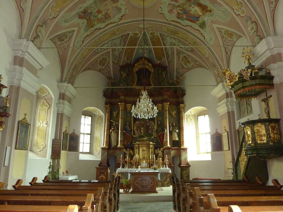 - Im Ortszentrum angekommen biegen wir rechts Richtung Kirche ab, wo sich auch der Geopark befindet