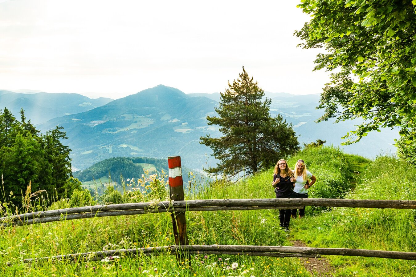 Vom Ebenwirt (SA/SO) wandern wir über den Weg 532a zirka 45 Minuten auf den Haneggkogel. Ein atemberaubender Ausblick auf das umliegende Bergland und bei guter Fernsicht sogar bis weit über Graz belohnen uns für diese Tour. Nach einem Eintrag ins Gipfelkreuz und einer kurzen Verschnaufpause nach dem letzten, kurzen, steilen Aufstieg geht es auf der anderen Seite ebenso so steil wieder hinunter. Bei herrlichen Ausblicken folgen wir der Beschilderung 533 und dem Grazer Umlandweg Richtung Zitoll.