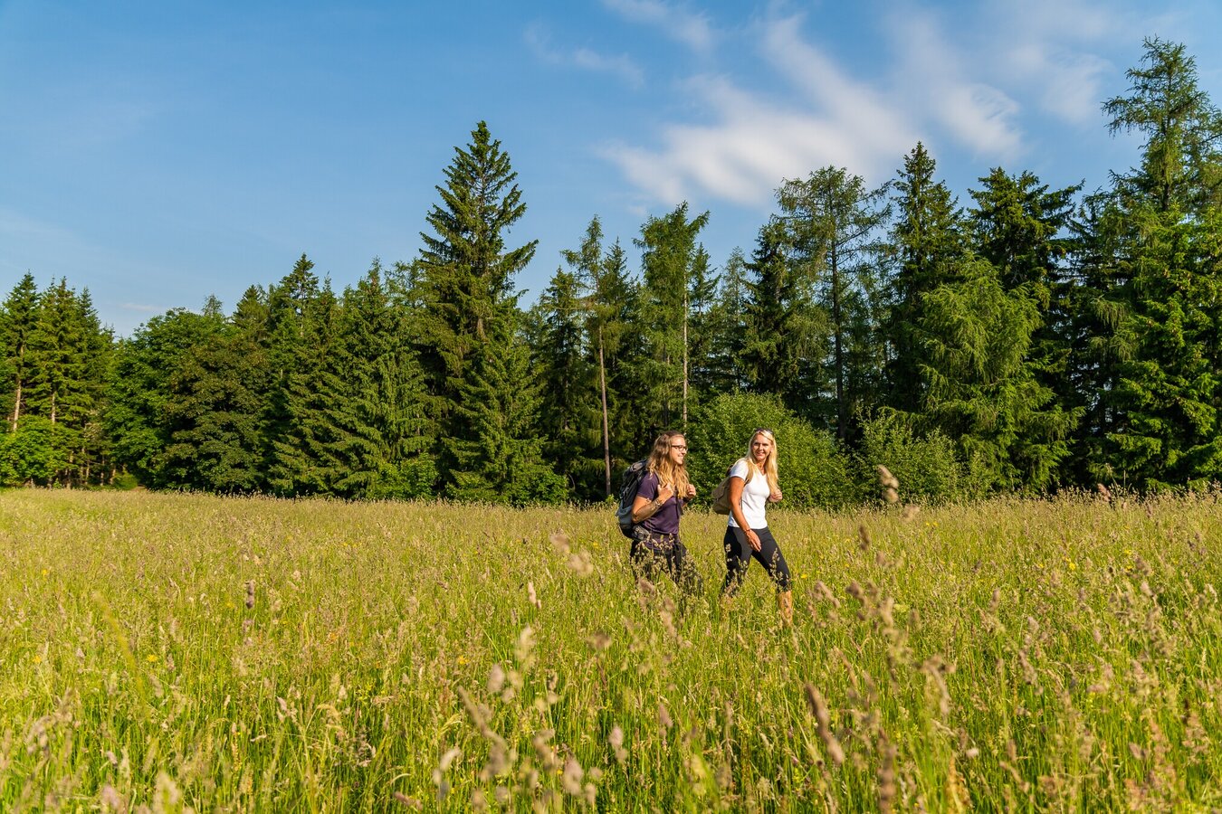 Schöne Wege und Mischwälder begleiten uns bergab bis zur Abzweigung zum Gasthaus Poldlwirt. Hier ist eine Einkehr sehr enpfohlen (bitte vorab wegen Öffnungszeiten informieren). Von hier kann man sich auch gut vom FLUX Sammeltaxi abholen lassen.