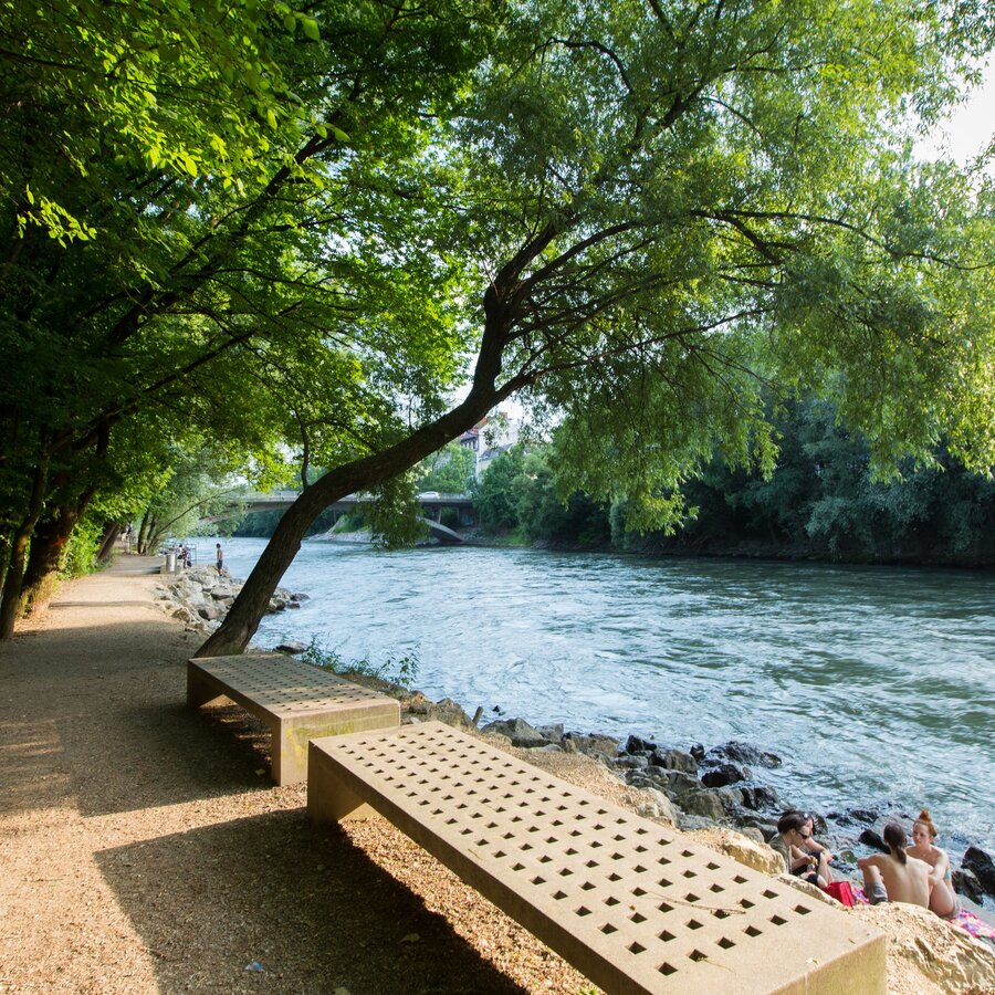 Vom Franziskanerplatz sind es nur ein paar Schritte Richtung Erzherzog-Johann-Brücke. Hier befindet sich der Abgabg zur "Mur-Promenade" - eines der wichtigsten Naherholungsgebiete der Grazer Bevölkerung.