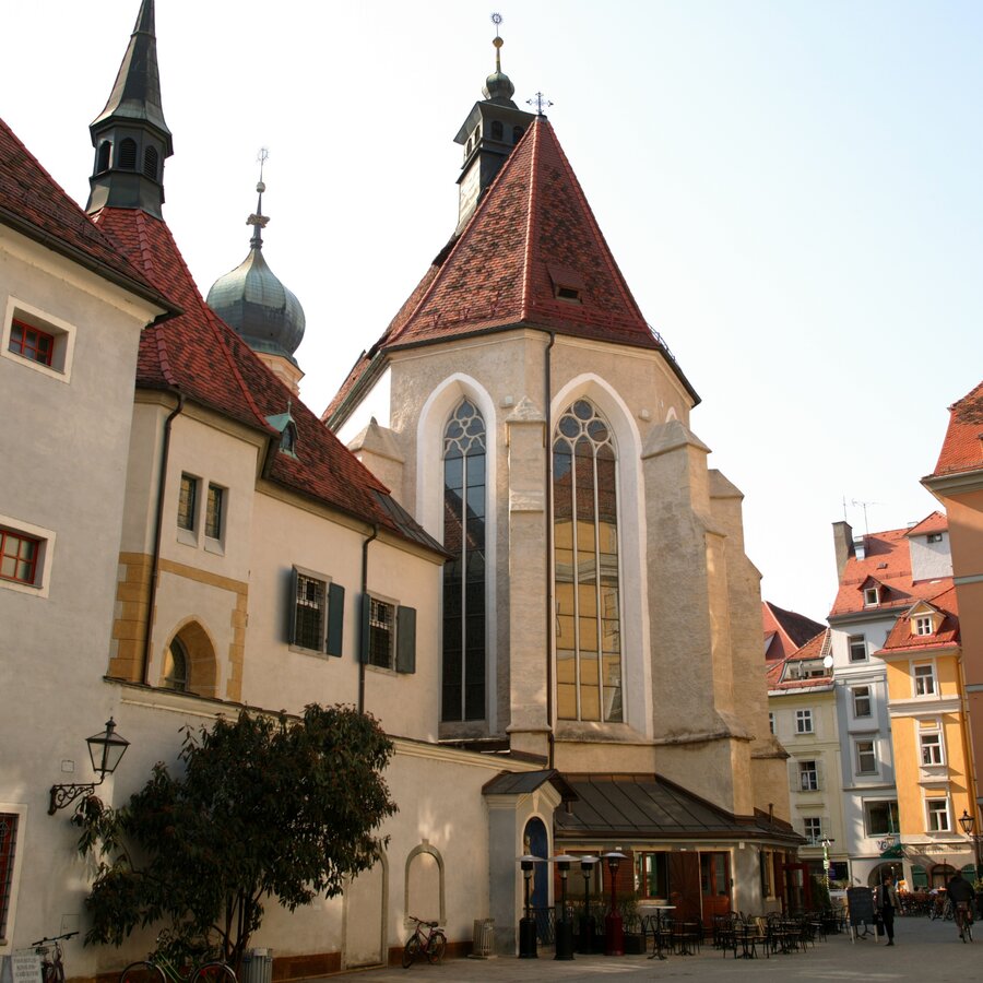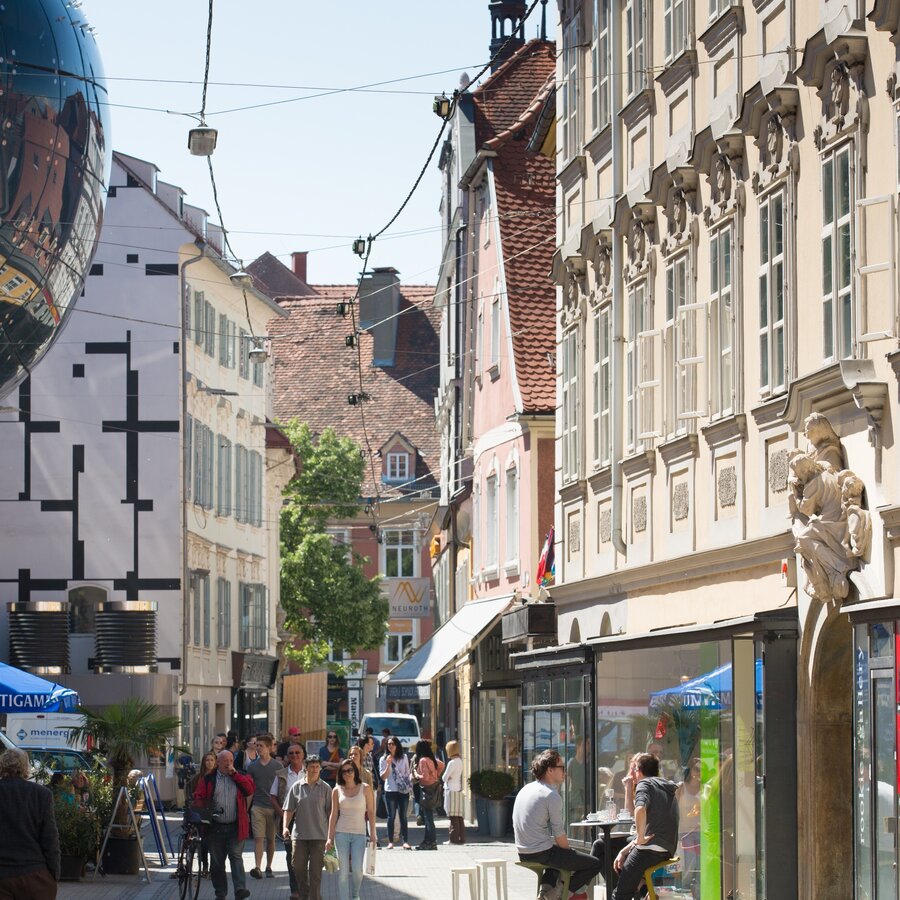 Den Spaziergang beginnen Sie am besten bei der Graz Tourismus Information, Herrengasse 16. Von der Herrengasse geht es zum Hauptplatz und von dort nach links, über die enge, schattenspendende Franziskanergasse, weiter ins Franziskanerviertel. Werfen Sie einen Blick auf das Franziskanerkloster - es ist ein Ort der Ruhe und des Friedens mitten im lauten Trubel der Stadt.