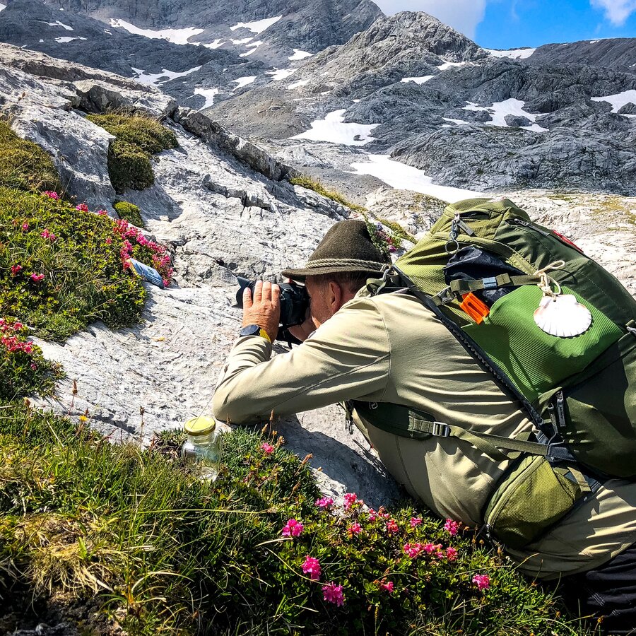 Durch zwei imposante Landschaften, die unterschiedlicher nicht sein könnten, führt uns diese Tour. Zunächst geht es über den Schladminger Gletscher mit Blick auf die weiten Flächen und Rücken der Landschaft "Am Stein", ein etwa 20 km² großes Karstgebiet, das auf den ersten Blick aus knochentrockenen Felskuppen und öden Gruben mit ein paar Grasoasen und Latschen besteht. Entlang des Weges sind wahrlich dann auch versteinerte Dachsteinmuscheln und Dolinenschlünde unsere Wegbegleiter. Doch, wie so oft, bringt ein genauerer Blick auf diese im ersten Moment als Steinwüste erscheinende Landschaft Erstaunliches an den Tag. Zwischen den messerscharfen Karrenfelsen und Dolinen erwacht Jahr für Jahr, kaum ist der Schnee geschmolzen, eine unglaubliche Pflanzenwelt: Almrausch und Enzian, Kohlröschen und Anemonen sorgen hier am Dachstein für üppige Blütenteppiche.
