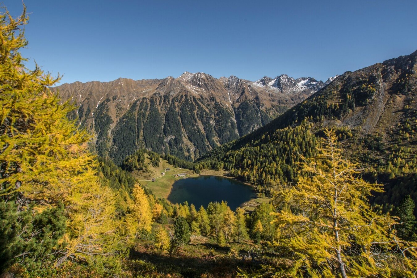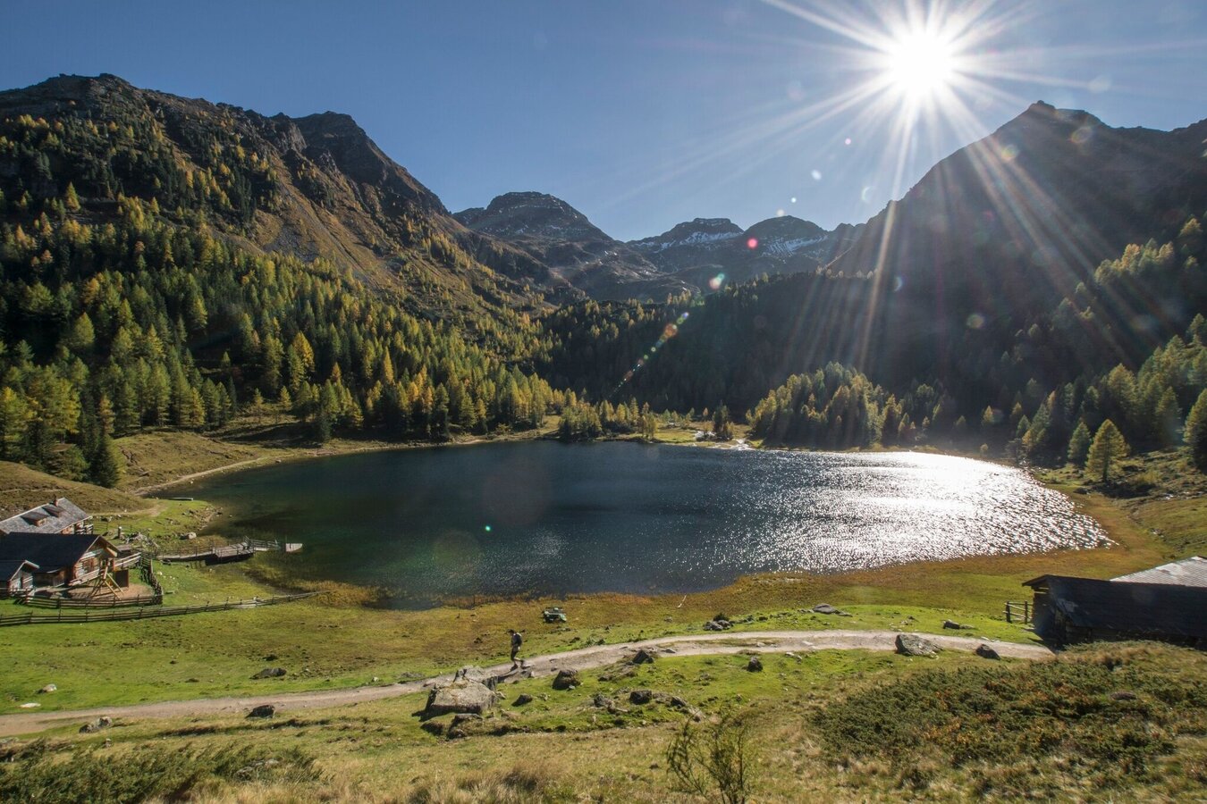 Leicht ansteigend verläuft der Weg nun entlang der Flanken von Grobfeldspitze, Giglachalmspitze und Murspitzsattel hin zum Murspitzsattel auf der Ferchtlhöhe. Vom Grat bietet sich hier ein atemberaubender Tiefblick ins Duisitzkar mit seinem dunklen grünblauen See. Der Abstieg ist zuerst recht steil und es gibt zu Beginn auch eine kurze seilversicherte Stelle an einem Wegabbruch. Danach wird das Gelände etwas flacher bis man schließlich in die ersten Ausläufer eines Lärchen- und Zirbenhochwaldes eintaucht. Durch den Bergwald geht es bergab zum See, der immer wieder zwischen den Bäumen hervorblitzt. Am See hat man sich bei der Duisitzkarseehütte oder Fahrlechhütte eine Einkehr verdient. Im Sommer sind die Tage auch lange genug um noch eine Zeit am See zu verweilen und die Natur zu genießen. Solltest Du zu den Hartgesottenen zählen und im See schwimmen gehen, nimm dabei Rücksicht auf die Fische im See und vermeide es beispielsweise Staub aufzuwirbeln. Geh bitte außerdem nicht mit Sonnenschutz eingecremt ins Wasser, da dies die sensible Ökologie des Sees aus dem Gleichgewicht bringen kann.