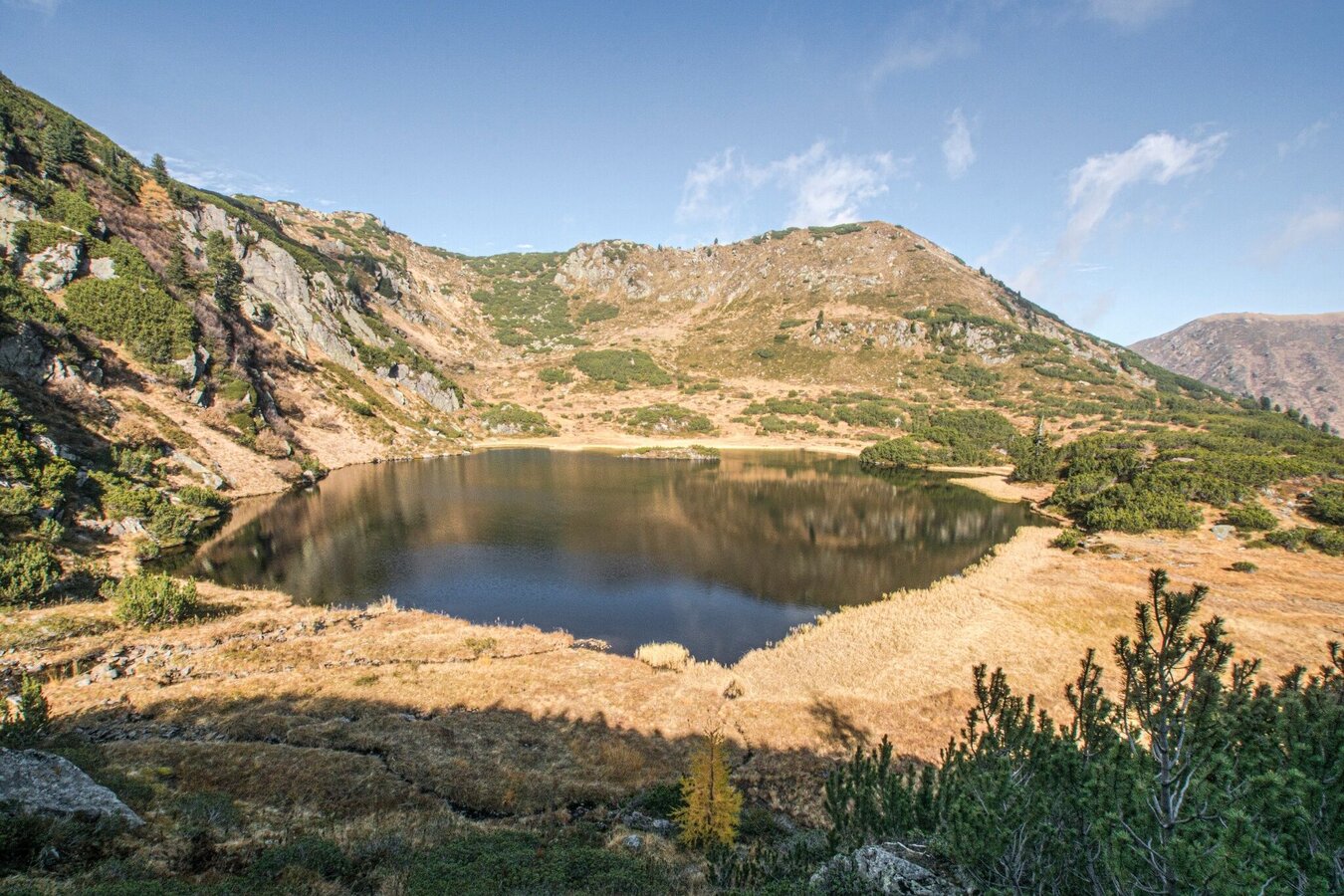 Unmittelbar nach dem Parkplatz am Dorfeingang von St. Nikolai im Sölktal zweigt man beim Wegkreuz nach rechts ab u. folgt nun für gut 40 Minuten dem Forstweg. An der ersten großen Kehre führt ein Almsteig steil bergauf u. kürzt die längeren Serpentinen des Forstweges ab. Durch schönen Hochwald erreicht man oberhalb der Baumgrenze die Kaltherbergalm und hat damit die ersten 500 Höhenmeter geschafft. Nach den Almböden wartet der nächste Anstieg (300 m), der steil über einen Bergrücken in ein schönes Kar führt, in den zwei malerische Seen eingebettet liegen, der Untere und der Obere Klaftersee.