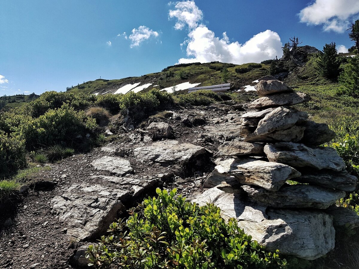 Eine Variante ist auch zurück über das Rossfeld und dann vom Hüttecksattel zur Talstation der Gipfelbahn Hochwurzen über den - etwas steileren - Weg Nr. 61 möglich.