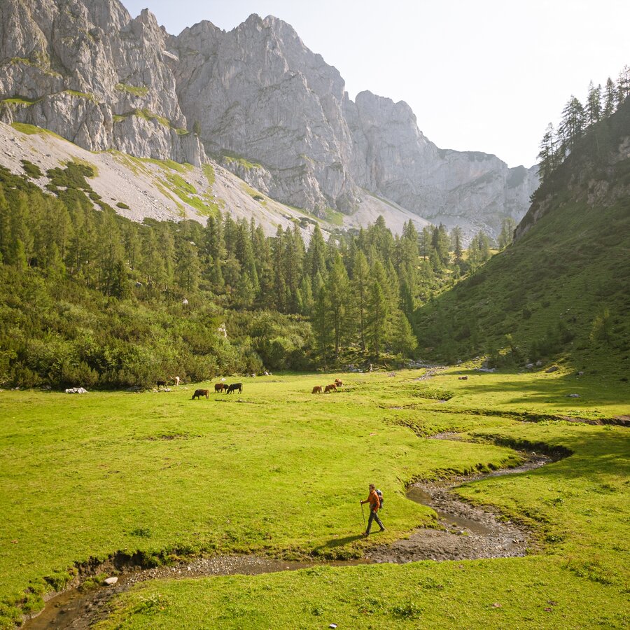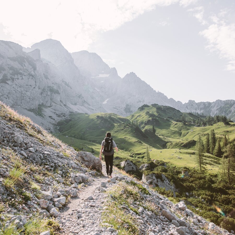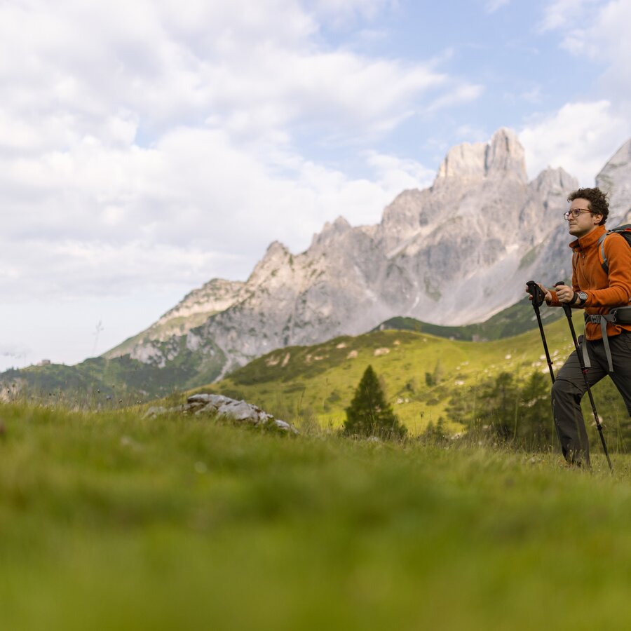 Auf der 1. Etappe der Dachstein Sonnen-Runde wanderst Du von den Hofalmen in Filzmoos durch das „Tor“ zum Tagesziel mit Übernachtung auf der Dachstein Südwandhütte. Auf dem Weg liegen viele wunderbare Erlebnispunkte wie die Hofpürglhütte, der Linzer Steig unterhalb des Gosaukammes, der "Schnittlauchboden", die Sulzenschneid und der markante Durchgang "durchs Tor". Nicht zuletzt werden die Dachstein Südwände, die vor Deinen Füßen eintausend meter bis auf fast 3 000 m Seehöhe hinaufragen, einen bleibenden Eindruck bei Dir hinterlassen.