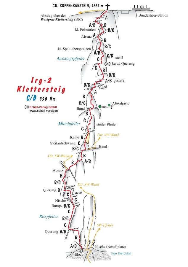 Der Irg 2 ist ein schöner und luftiger Klettersteig an den Südostabbrüchen des Großen Koppenkarsteins. Er wurde erst 2016 neu errichtet und nach dem Erstbegeher der Dachstein Südwand, Georg ("Irg") Steiner benannt. Die Routenlegung mit optimaler Geländeausnützung lässt jedes geübte Klettersteigherz höher schlagen. Neben tollen Quergängen enthält der Klettersteig auch durchaus steile Pfeiler, er ist also auch nicht zu unterschätzen.