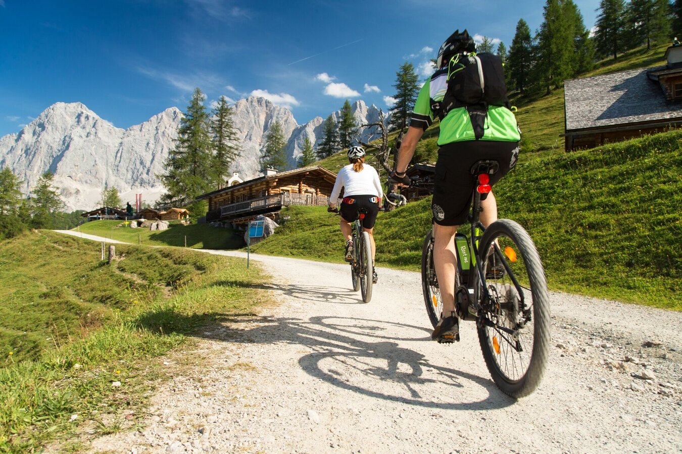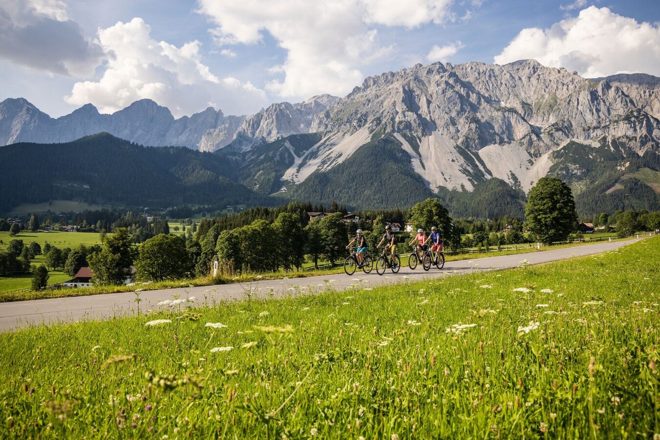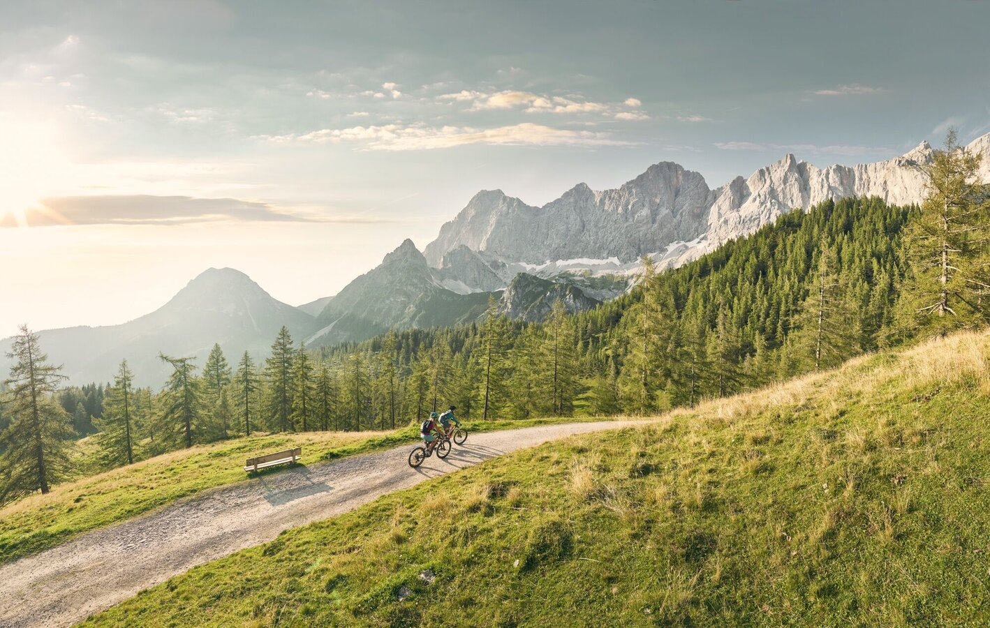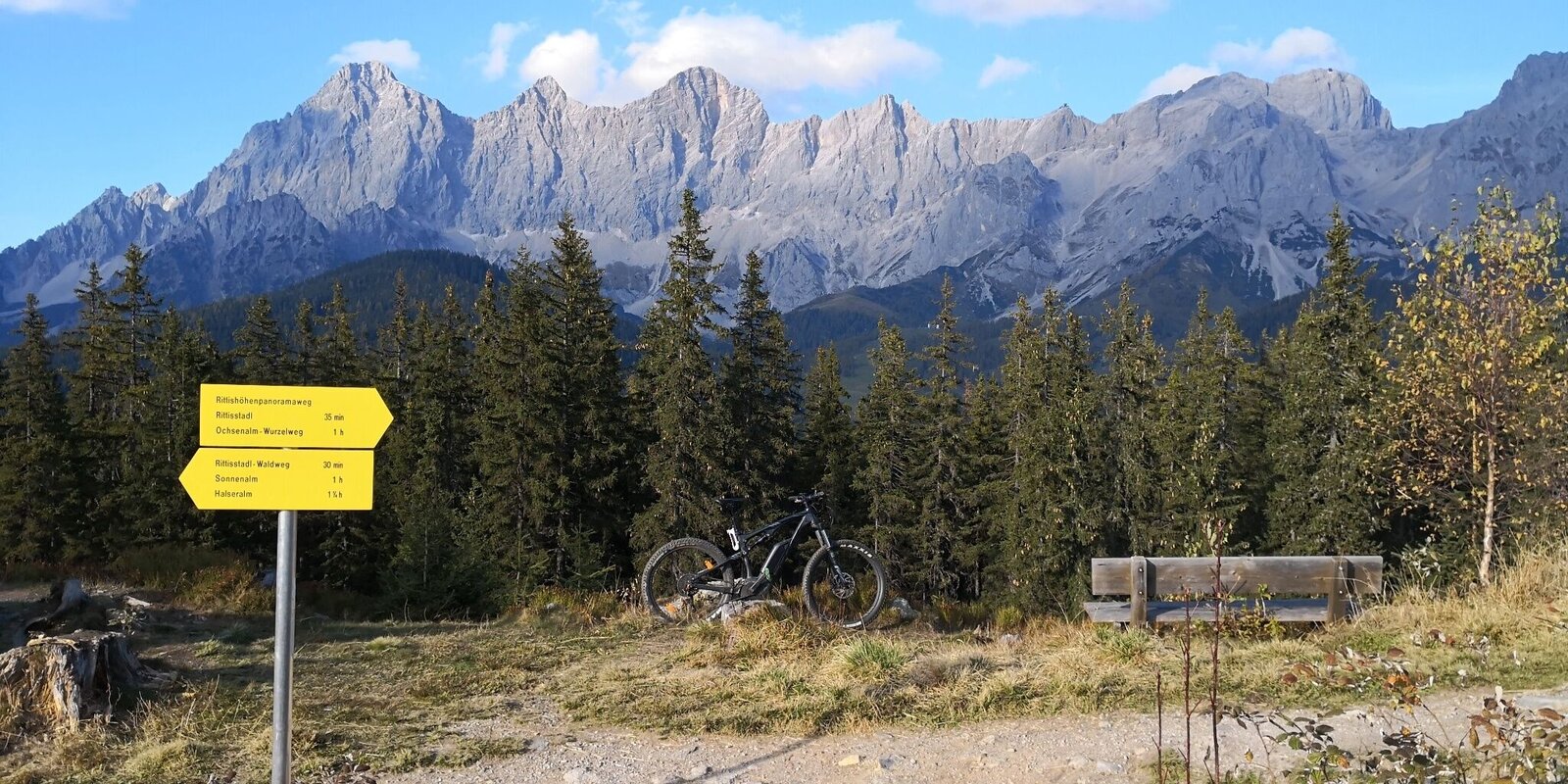 Anschließend folgt eine rasante Abfahrt über die asphaltierte Mautstraße zurück auf das Ramsauer Hochplateau. Nach einem kurzen, flacheren Abschnitt beginnt der nächste Anstieg hinauf zum Rittisberg. Am Gipfelkreuz angekommen wird man mit einem fantastischen Rundumblick vom Dachstein bis zu den Tauern belohnt.