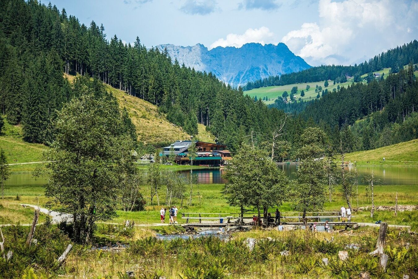 Genießen Sie den unglaublichen Blick auf die Bergwelt der Schladminger Tauern mit der Hochwildstelle (2.747 m) als absolutes Highlight. Ebenfalls empfehlswert ist eine gemütliche Ruderboottour am Steirischen Bodensee.