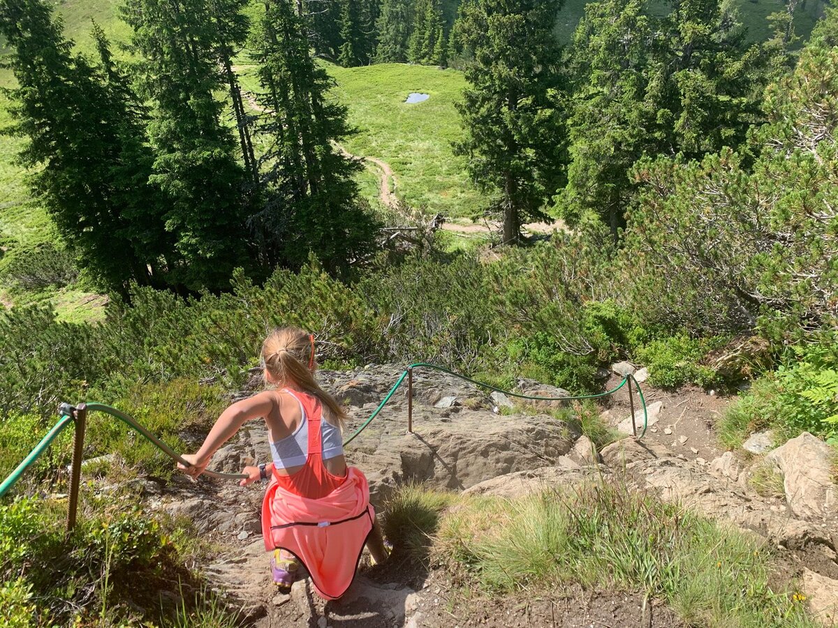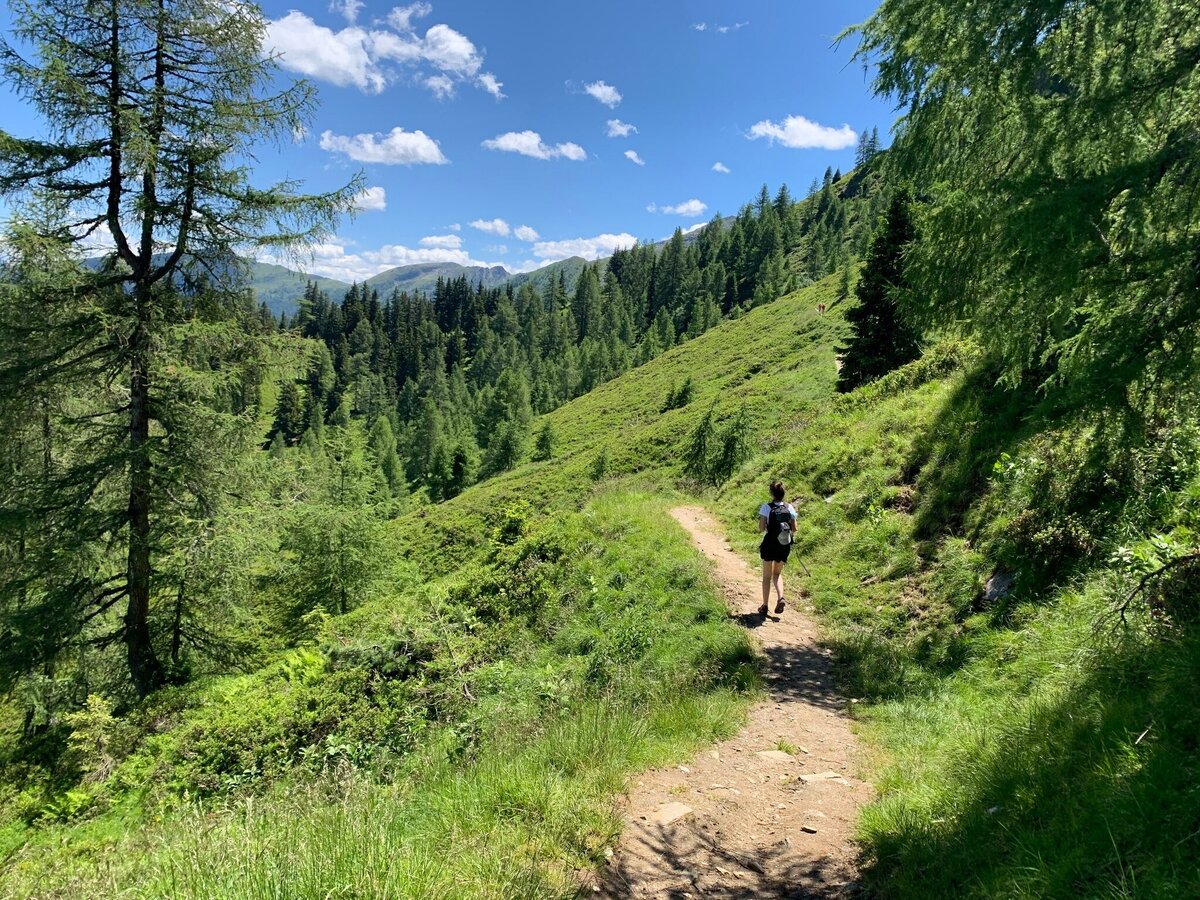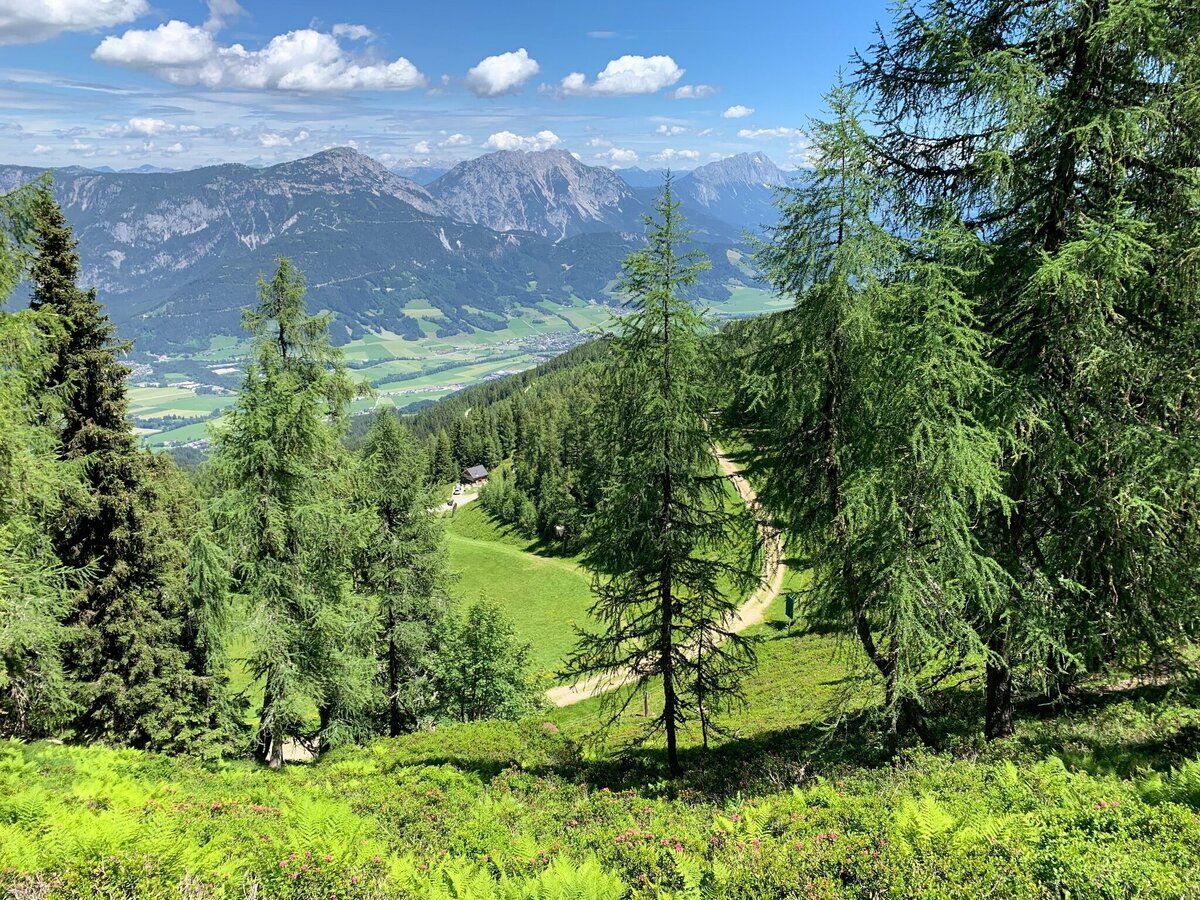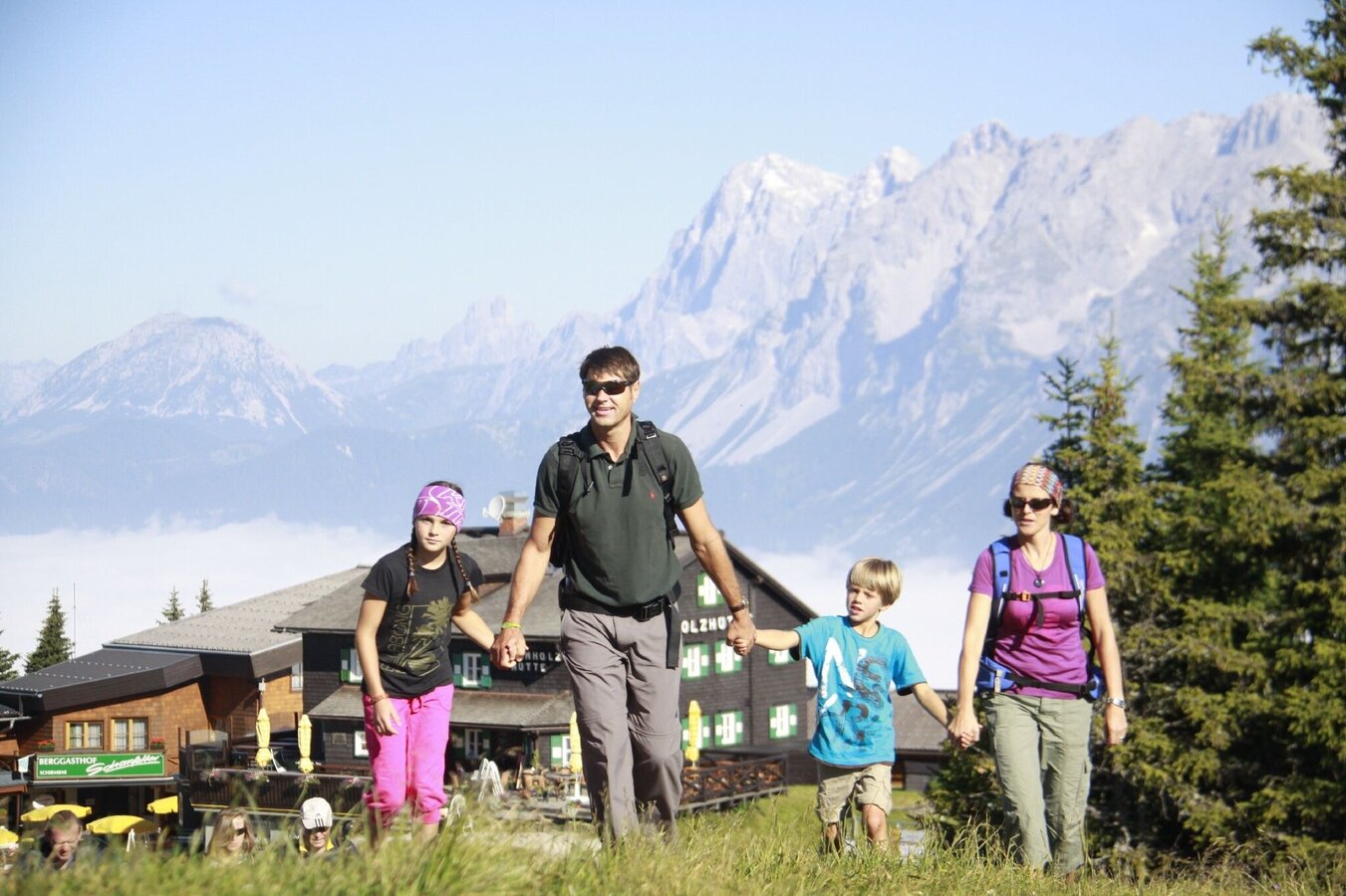 Der große Höhenunterschied kann bequem mit der Schladminger Tauernbahn oder der 8er-Gondelbahn Hauser Kaibling & der 8er-Sesselbahn Kaiblinggrat überwunden werden. Ein herrlicher Blick über das gesamte obere Ennstal erwartet uns. Von der Bergstation gehen wir einige Minuten leicht bergauf, wo der Schafsinn-Rundweg bei der TV-Station nach links in östlicher Richtung abzweigt. Dort sehen wir bald die große „Schafbox“, den eigentlichen Startpunkt des Rundweges. Dieser ist durchgehend beschildert und führt dann in leichtem Auf und Ab im Uhrzeigersinn um den Hauser Kaibling herum zum Rossfeldsattel. Von dort führt der Weg leicht abwärts zur Kaiblingalm. Diese ist für Familien mit Kinderwagen von der anderen Seite über den Forstweg, der auch zur Bergstation der Seilbahn zurückführt, gut erreichbar.