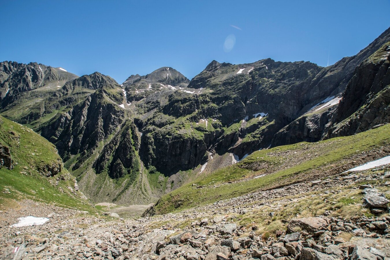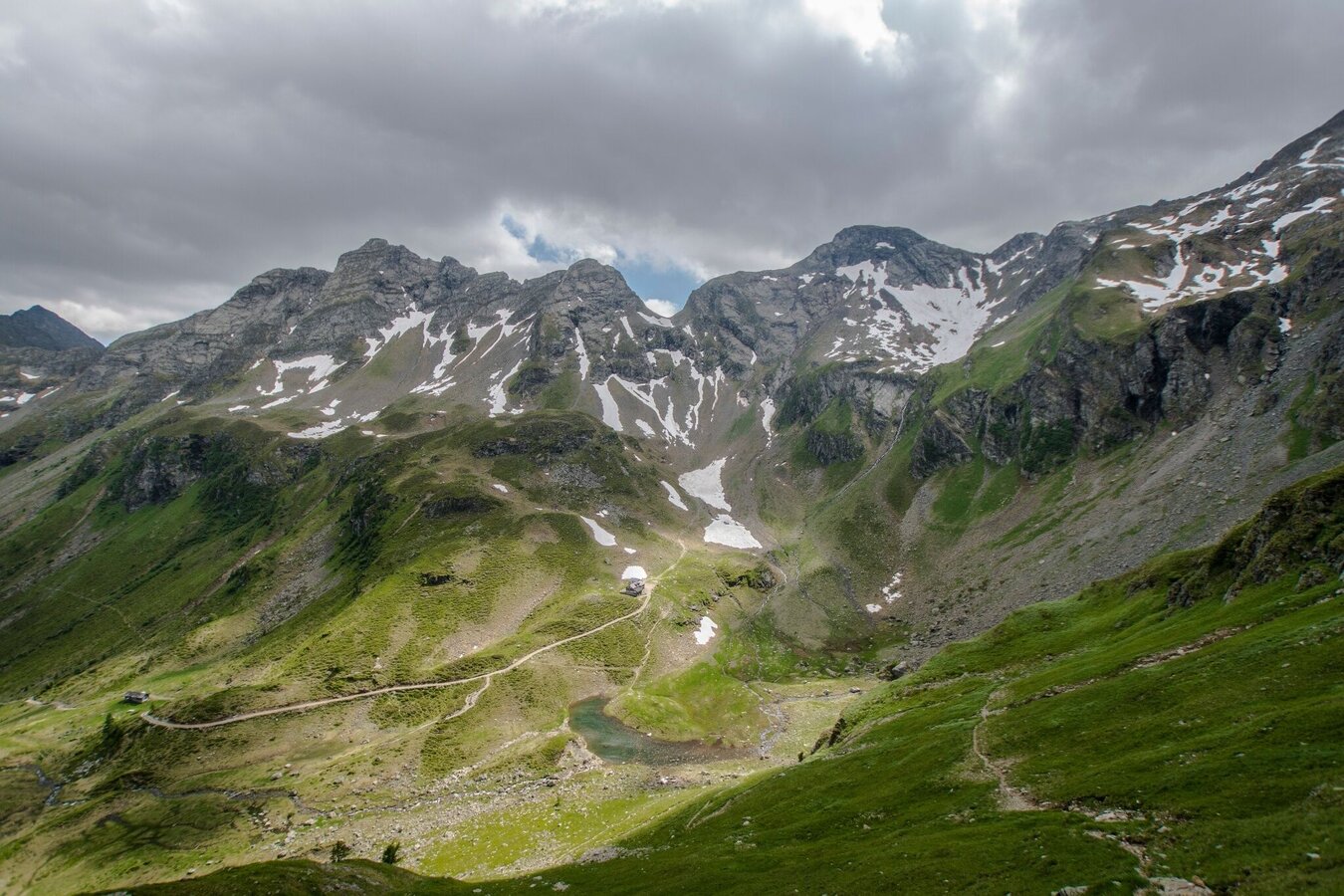 Über die »Kleine Wurzen« und den Hüttecksattel läufst Du auf das Rossfeld. Kurz bergab auf den Latterfußsattel, und von dort aufsteigend auf den Aussichtsberg Guschen (1.982 m). Über den Wandersteig #773 folgst Du dem Trail zum Hochfeldmandl (ein großes Steinmandl unterhalb des Hochfeld-Gipfels) und läufst unterhalb des schroffen Schiedeck-Gipfels (ACHTUNG: sehr ausgesetzt) vorbei. An Klamm- und Brettersee vorbei erreichst Du dann die Ignaz-Mattis-Hütte (1.986 m) oberhalb des Unteren Giglachsees. Nach rechts kannst du hier dem Giglachseen Trail (Trail #8) zur Ursprungalm folgen.