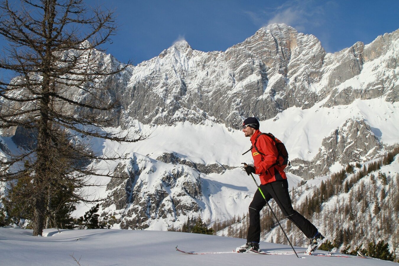 Aufstieg: Vom Gasthof Dachsteinruhe auf der rechten Seite entlang des Baches. Nach ca. 300 m über den Sommergweg in Richtung Neustattalm. Dieser geht in freies Gelände über, der Weg führt weiter Richtung Neustattalm und zur Talstation des Dachsteingletschers. Aufstieg über den Lehmerwald zum Grat (Schönbühel) und von dort zur Südwandhütte (im Winter nicht bewirtschaftet). Bei guten Schneeverhältnissen einige Höhenmeter weiter. Abfahrt: Entlang der Aufstiegsroute gibt es viele variantenreiche Abfahrten. Zurück zur Glösalm oder weiter durch den „Stierwald“ - steil mit engen Passagen zum Gasthof Dachsteinruhe - Ramsau Hierzegg.