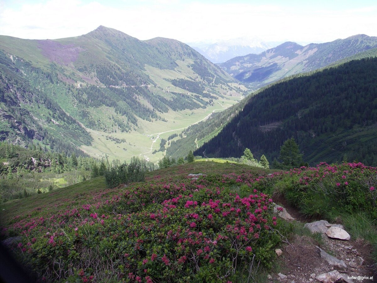 Vom Leonhardkreuz im Sattental führt ein Forstweg über ehemalige Waldhänge (jetzt allerdings baumlose Hänge nach den letzten Stürmen, dafür aber aussichtsreich) hinauf zur Schladminger Alm. Man geht ca. 1,15 Std. bis zur urigen und sehr bodenständigen Schlierf Hütte, wo man sehr herzlich empfangen u. bewirtet wird. Xandi, die Almsau, ist Streicheleinheiten gewöhnt und gehört zum Hütteninventar. Der folgende Aufstieg zum Schladminger Törl führt immer näher zum Felsgrat, dem man bis zum Spateck Gipfel folgt. Trittsicherheit u. Schwindelfreiheit ist von Vorteil!Vom Spateck zum Schusterstuhl ist es nicht mehr weit – die Aussicht in beide Täler großartig und der Abstieg vom Schusterstuhl in Richtung Schneetalalm nicht schwierig. Das Steiglein ist kaum ausgeprägt u. man steigt hinunter bis man auf den Almweg trifft, der von der Schladminger Alm zur Schneetalalm führt, wendet sich dort nach rechts, talauswärts, und wandert nun auf einem romantischen Almweg zur Schladminger Alm zurück und von dort auf den selben Weg (Nr. 785A) wieder zurück zum Ausgangspunkt Leonhardkreuz.piner Steig und Gratwanderung.