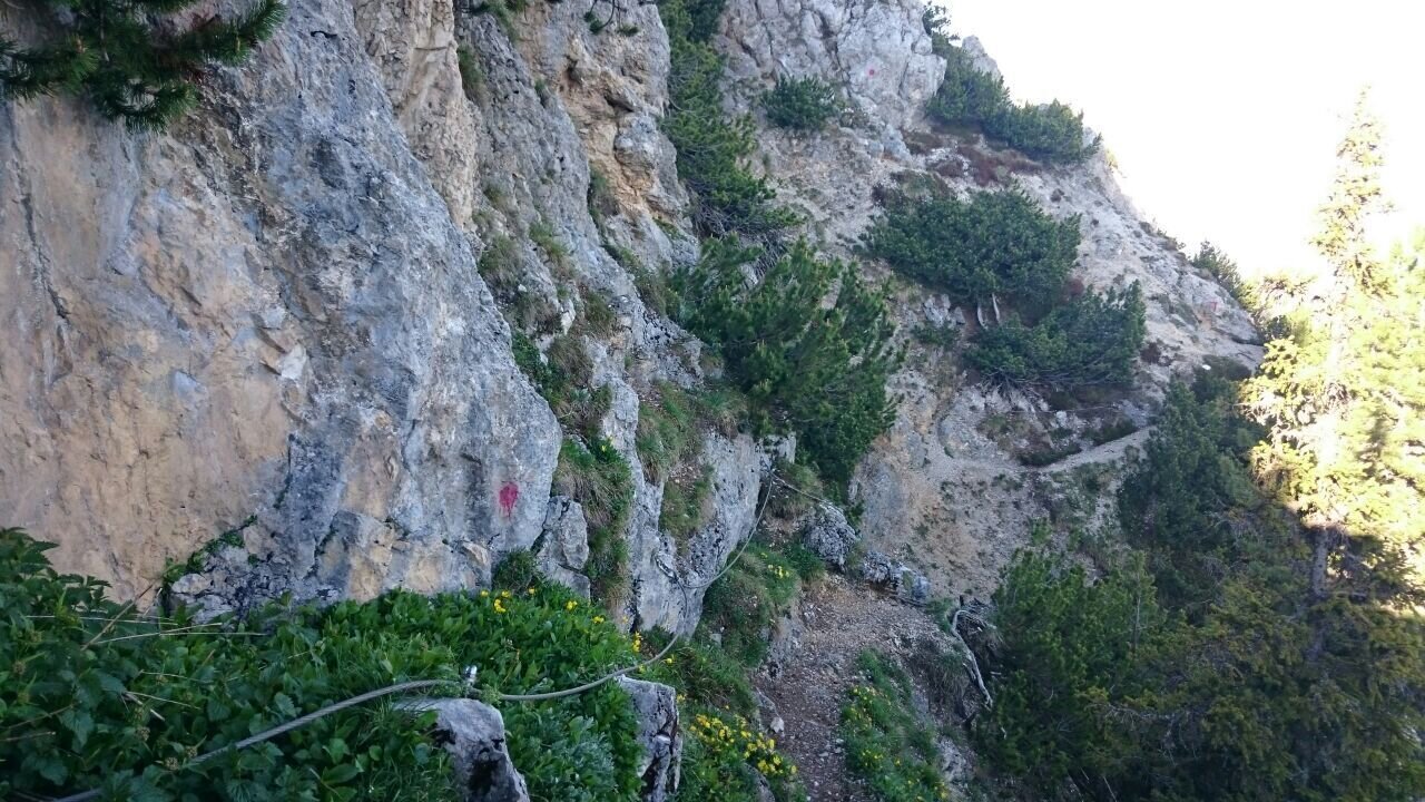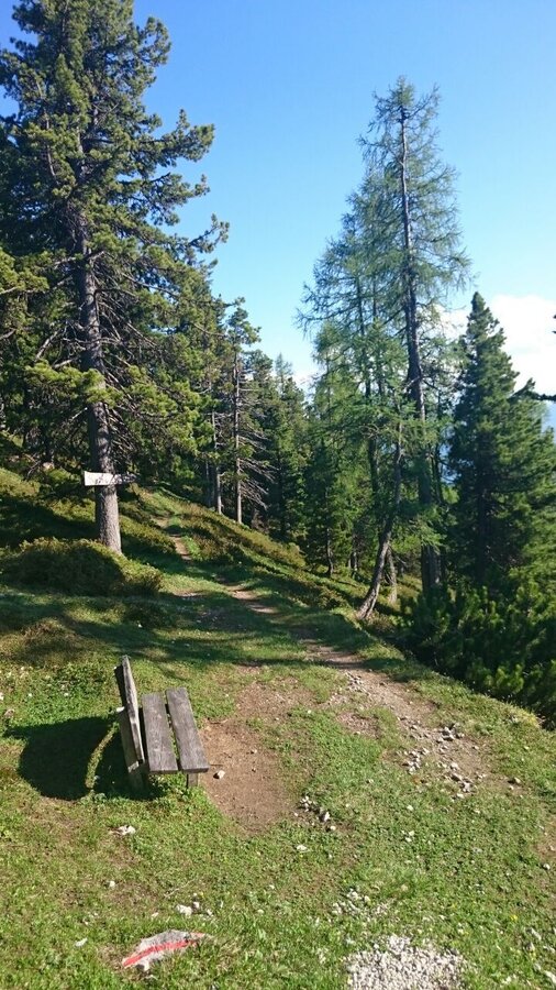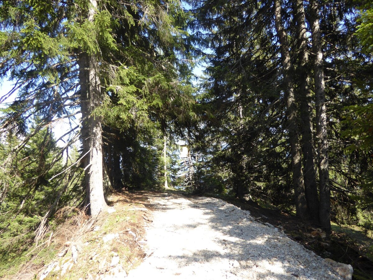 Es geht weiter bergauf vorbei am Gedankenstrich dorch den Wald zum Steiner Sprung. Die Straße queren, den Weg zum Verlobungskreuz folgen und weiter zur Kaiserwand. Nach 30m rechts auf den alten Stoderweg bis zur Stoderhütte folgen.