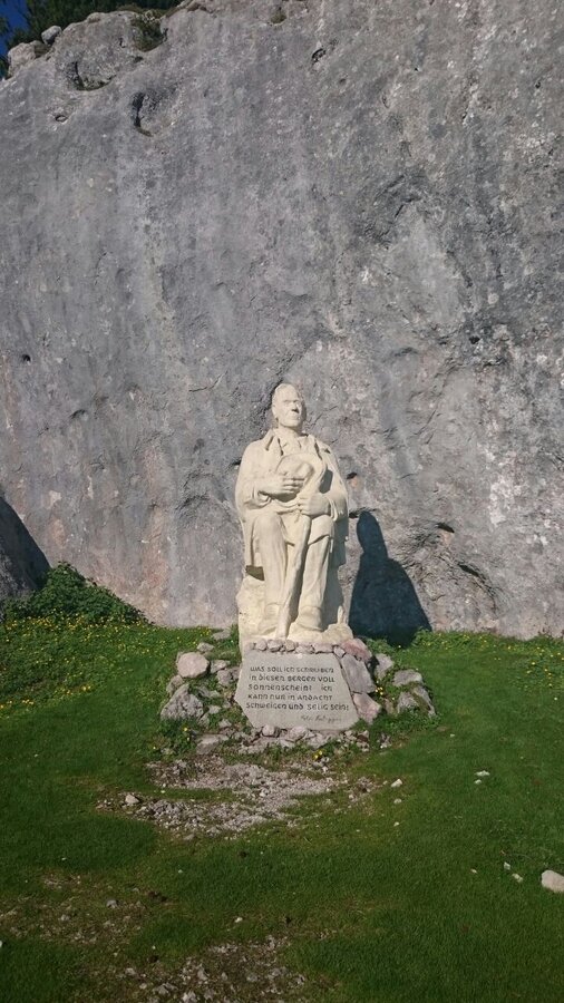 Von dort geht`s rechts leicht ansteigend hinauf bis zum Rosseggerdenkmal. Hier gibt`s dann zwei Varianten: Weiter zum Friedenskircherl und ab da nur für geübte Bergwanderer über den Florasteig zum Gipfel oder vom Rosseggerdenkmal hinauf durch den "Latschenweg" zum Gipfelkreuz Stoderzinken, wo man die herrliche Aussicht vom Dachstein bis zum Großglockner genießen kann!!