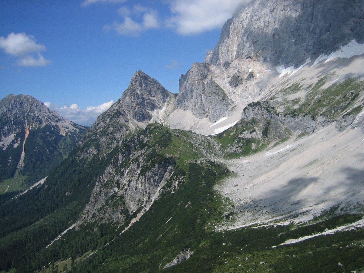Die wilde Wucht der hoch aufragenden Südwände von Dachstein, Mitterspitz und Torstein machen diese Tour unvergesslich. Ein Alpiner Steig, teilseise über Geröllhalde und Forstwege.
