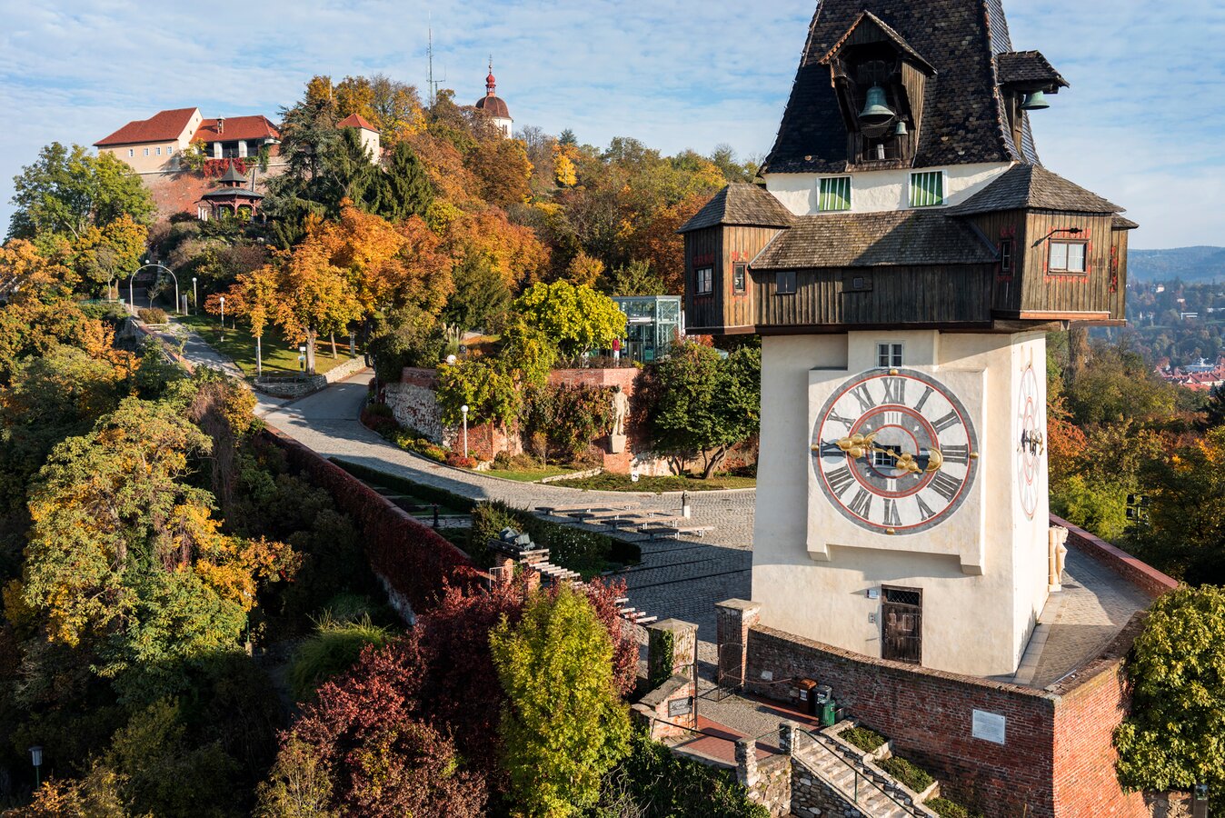 Der Schlossberg überragt mit seinen 123 m den Hauptplatz und ist schon ein Highlight für sich. Oder kennen Sie den Uhrturm mit seinem einzigartigen Uhrwerk von innen? Ihr Guide erklärt Ihnen genau was es mit den verkehrten Zeigern auf sich hat. Die leider nicht mehr vorhandene Burg gilt nach wie vor als stärkste Festung aller Zeiten, woran sogar Napoleon scheiterte. Geblieben sind dank der Grazer Bevölkerung das Grazer Wahrzeichen der Uhrturm und der Glockenturm mit der drittgrößten Glocke der Steiermark der „Liesl“. Die Zeiger auf den mächtigen Zifferblättern sorgen häufig für Verwirrung. Gehen in Graz die Uhren anders? Unser Guide erzählt Ihnen gerne was es mit den vertauschten Zeigern aufsich hat. Das Uhrwerk, das Michael Sylvester Funck im Jahre 1712 baute, funktioniert noch heute, wird aber seit Mitte des 20. Jahrhunderts elektrisch betrieben. Genießen Sie abschließend einen „Steh-Umtrunk“ am Berg und den fabelhaften Ausblick auf die einzigartige Dächerlandschaft.