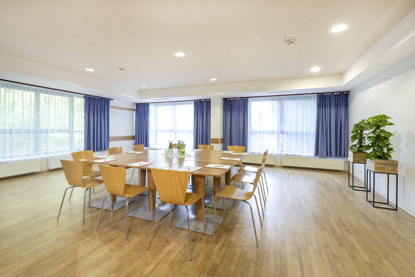 - Besonderheiten: Beamer, CD-Player, Internetzugang und WLAN, Pinnwand, Leinwand, Flipchart, Moderationskoffer