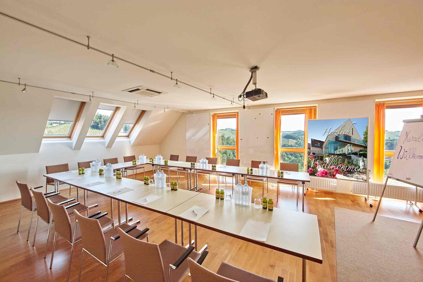 Unsere Seminarräume sind mit den modernsten technischen Einrichtungen ausgestattet. Das neue Seminarhaus in ruhiger Einzellage inmitten der Weinreben bietet ein wunderbares Arbeitsambiente. Darüber hinaus bieten wir Ihnen Pauschalangebote und sind wir bemüht, Ihnen ein Rundum-Servicezu bieten, das Ihre Arbeit zu einem produktiven und inspirierenden „Termin“ und Erlebnis macht.