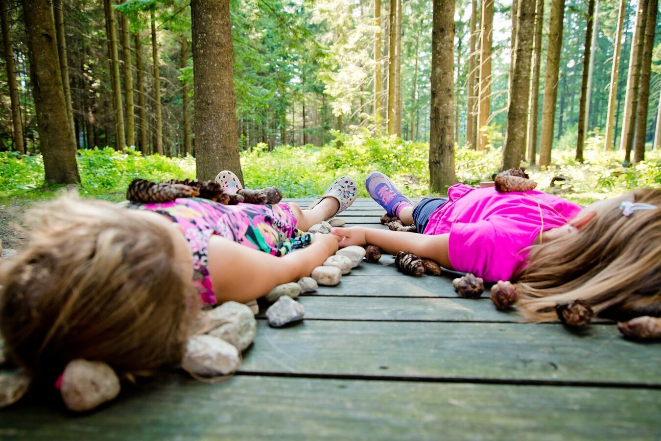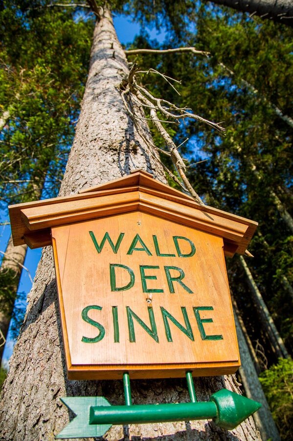 Beim Teichwirt Urani, etwa 2 km in Richtung Mürzzuschlag außerhalb des Neuberger Ortszentrums, zweigt unser Weg links ab und führt uns, kurz in Richtung Schneealm bergauf radelnd, jedoch noch vor dem Michlbauerhof rechtshaltend, zum Wald der Sinne (https://www.muerzeroberland.at/ausflugsziele-naturpark/themenwege/wald-der-sinne/).