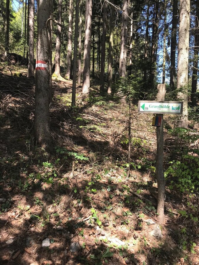 - Zunächst geht es stetig bergauf - ident mit dem Wegverlauf des Naaser Höhlenweges - bis zur Grasslhöhle, die älteste Schauhöhle Österreichs. Danach geht es immer weiter durch den Wald den Berg hinauf, Lichtungen zwischendurch bieten wunderschöne Ausblicke in die Oststeiermark mit dem Raabtal und Weiz im Vordergrund.