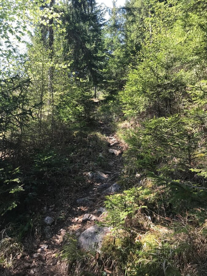 - Wir starten beim Gasthof Dürntalwirt und zweigen nach einem kurzen Aufstieg entlang der Straße nach etwas mehr als 100 Metern rechts in den Wald auf den Weg Nr. 18 ein. Diese Wegnummer führt uns den gesamten Weg entlang, nur bei der Gösser Wand zweigen wir auf den Weg Nr. 18b ab.