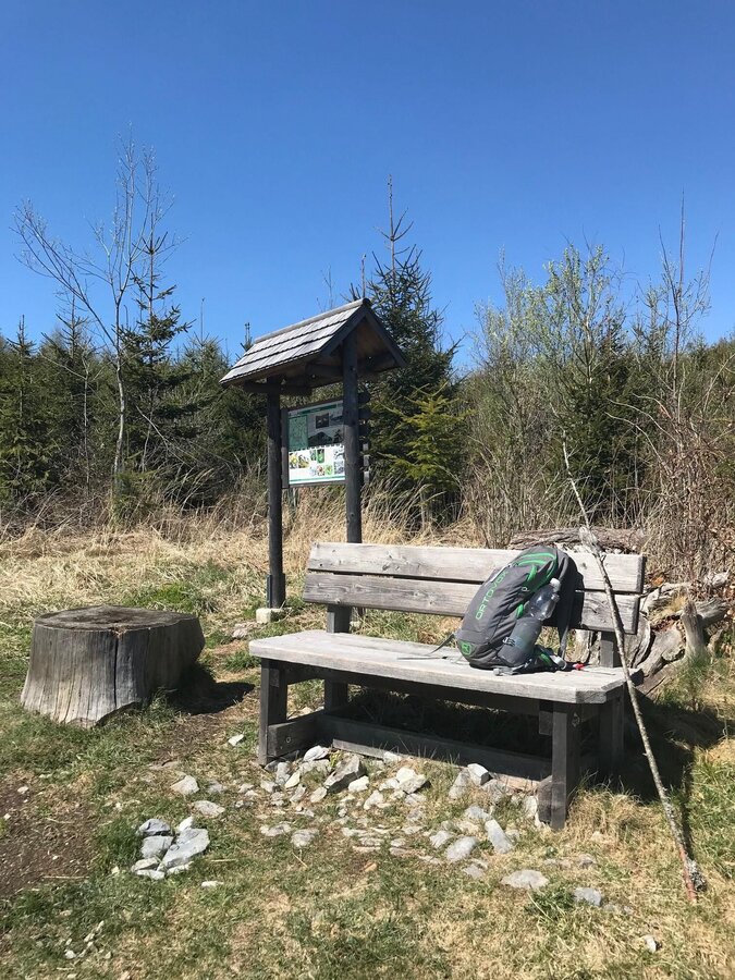 - Alsbald gelangen wir auf eine Anhöhe mit einem gemütlichen Rastplatz. Auf einer Tafel erfahren wir Wissenswertes über das ehemalige Almleben hier heroben.