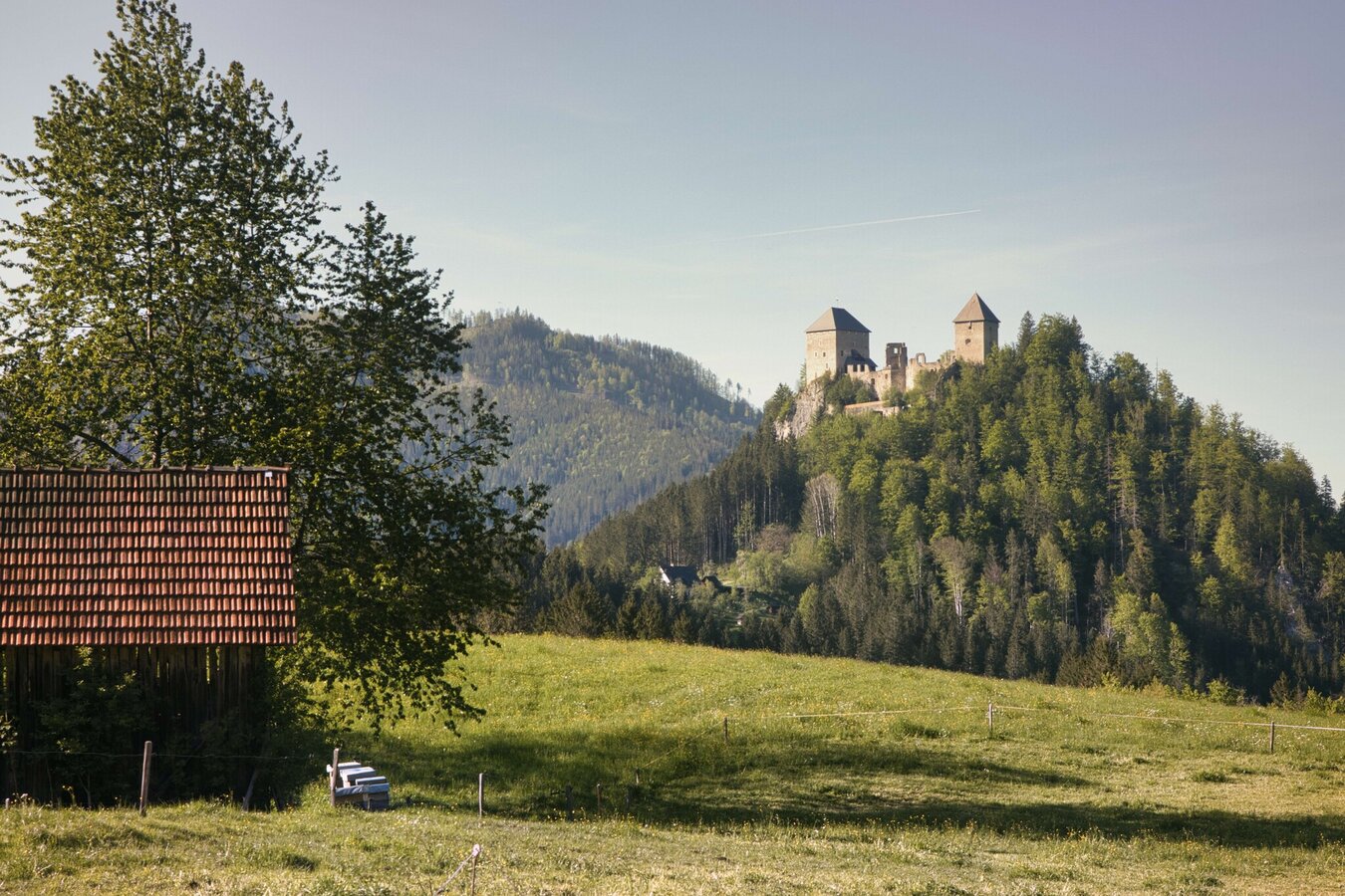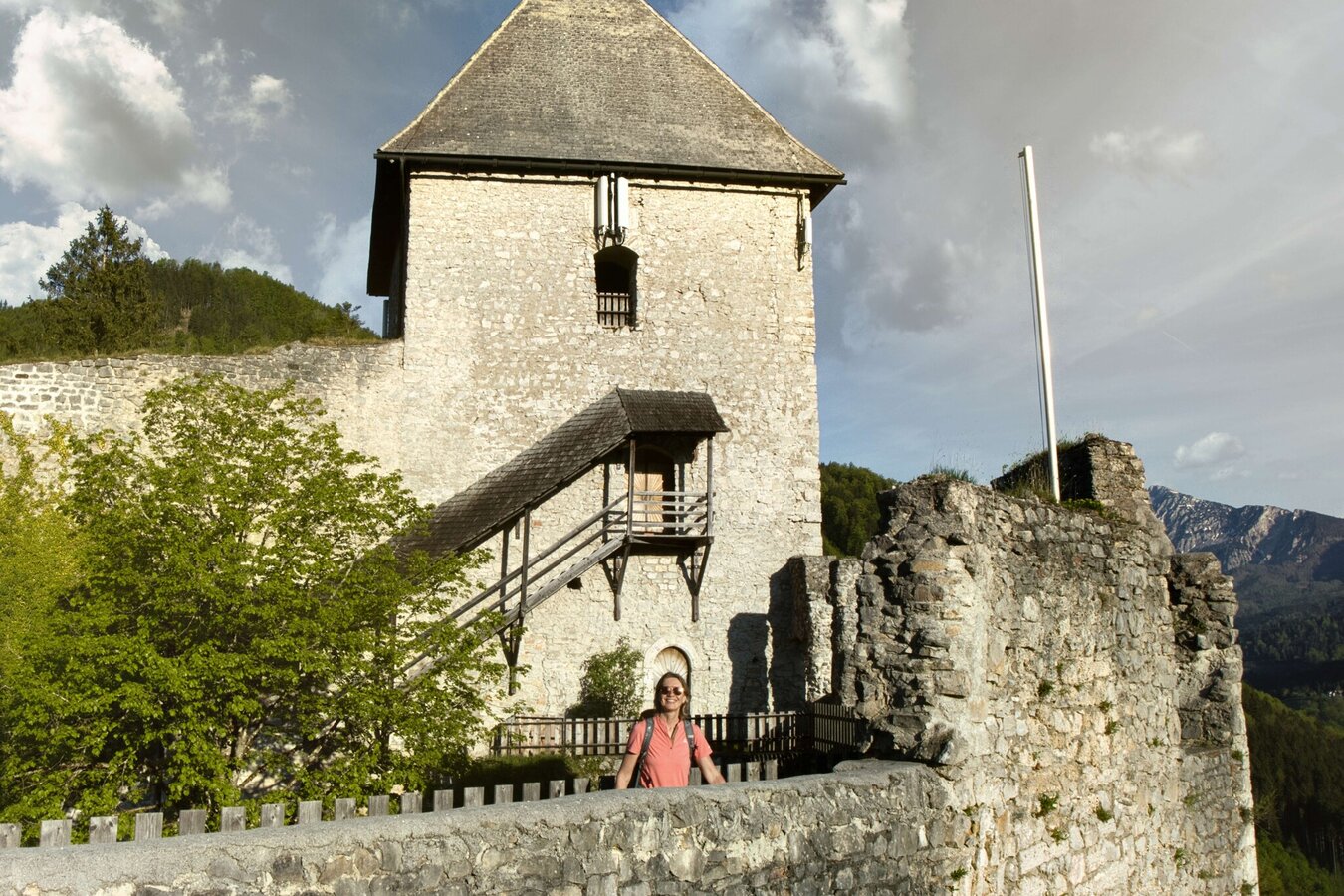Hoch über St. Gallen liegt die Burgruine Gallenstein – ein Abstecher entlang des Weitwanderweges, der sich auf jeden Fall lohnt. Seit dem 13. Jahrhundert thront sie über dem Tal, diente lange Zeit als Fluchtburg und Verwaltungssitz des Stiftes Admont und wurde nach ihrem Verfall vom Burgverein ab den 1960er-Jahren mit viel Engagement wieder aufgebaut.