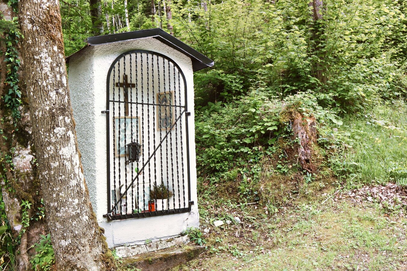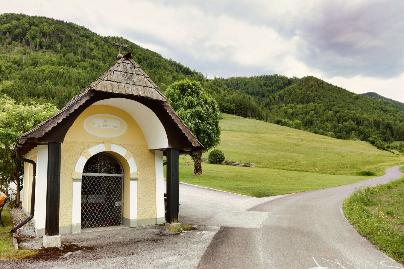 Lebensmittelgeschäft in Kirchenlandl. Durch das besiedelte Gebiet gelangen wir