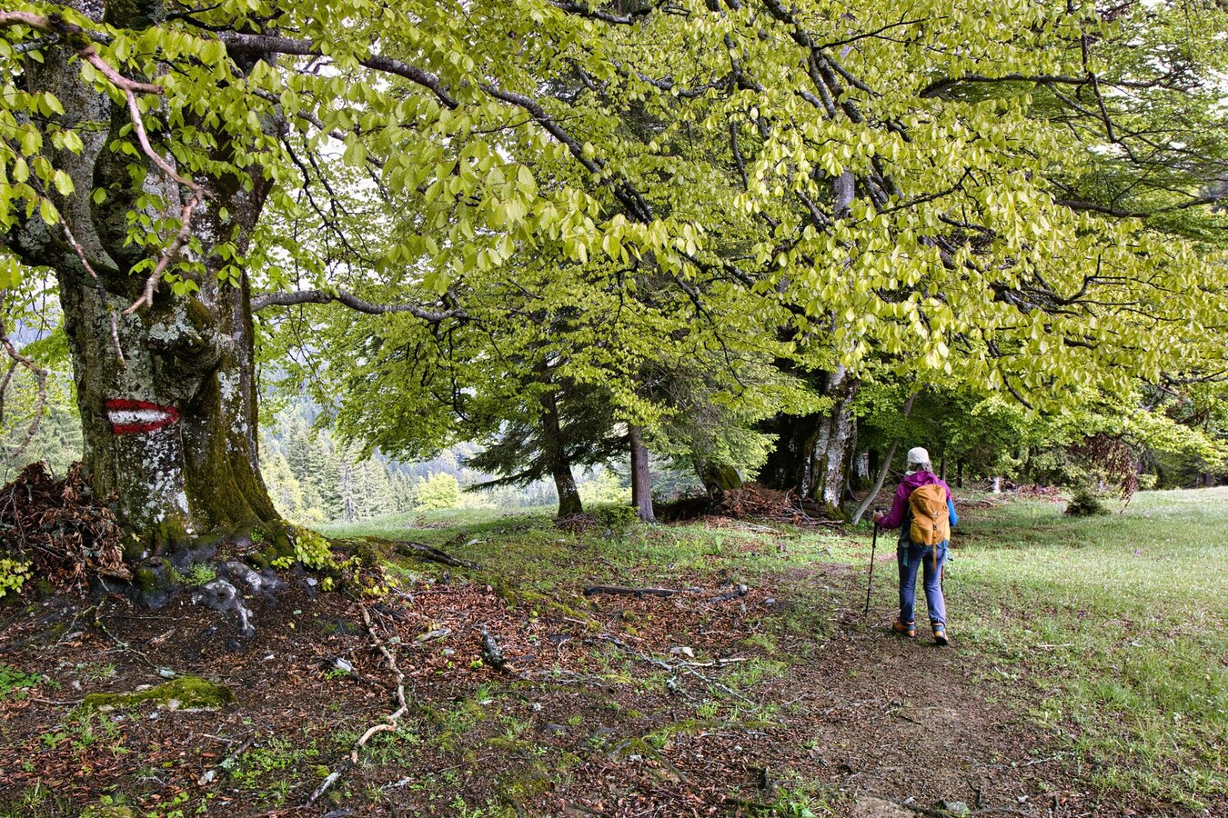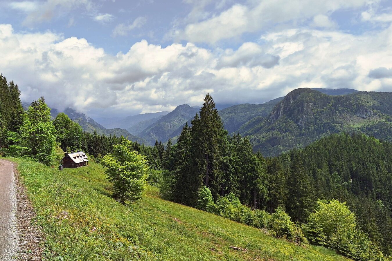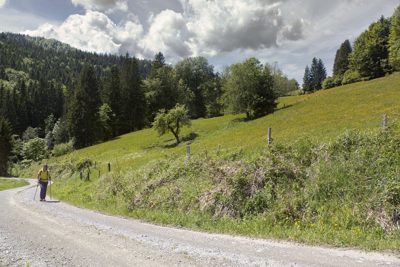 Der Natur- und Geopark Steirische Eisenwurzen zählt zu den waldreichsten Regionen der Steiermark – auf dieser Etappe wird das besonders spürbar. Dichte Wälder begleiten den Weg, doch immer wieder öffnen sich Ausblicke auf den Gamsstein, die Orte Gams und Palfau sowie auf sanfte Hügel und bewaldete Täler. Die Wegstrecke verläuft gemütlich im leichten Auf und Ab bis zur bekannten Naturfreundehütte, bevor die letzten Höhenmeter bergab zur Pfarrkirche Palfau führen. Palfau liegt auf einer Flussterrasse der Salza, war einst ein wichtiger Knotenpunkt der Eisenstraße und ist heute vor allem für die Wasserlochklamm bekannt – eine spektakuläre Schlucht mit Wasserfällen, Hängebrücke und einer der stärksten Quellen Österreichs.