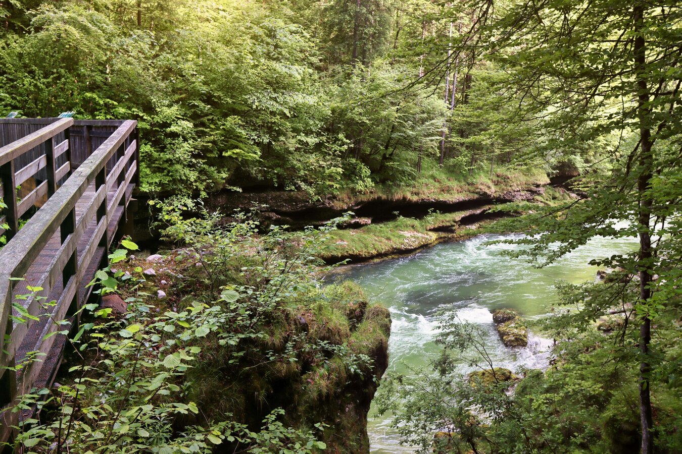 nach einem kurzen steileren Abstieg den Salzasteg (2,4 km) erreichen.