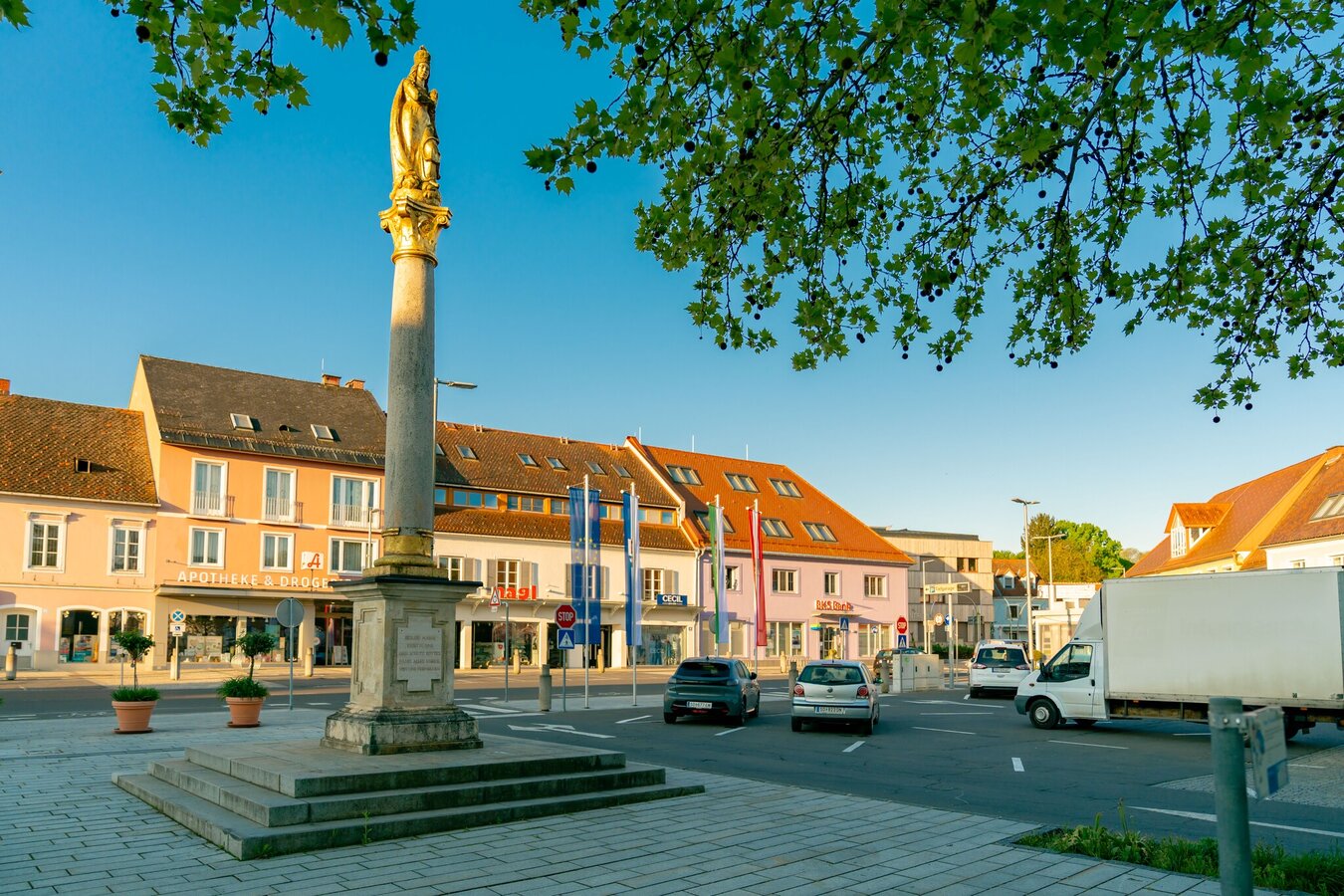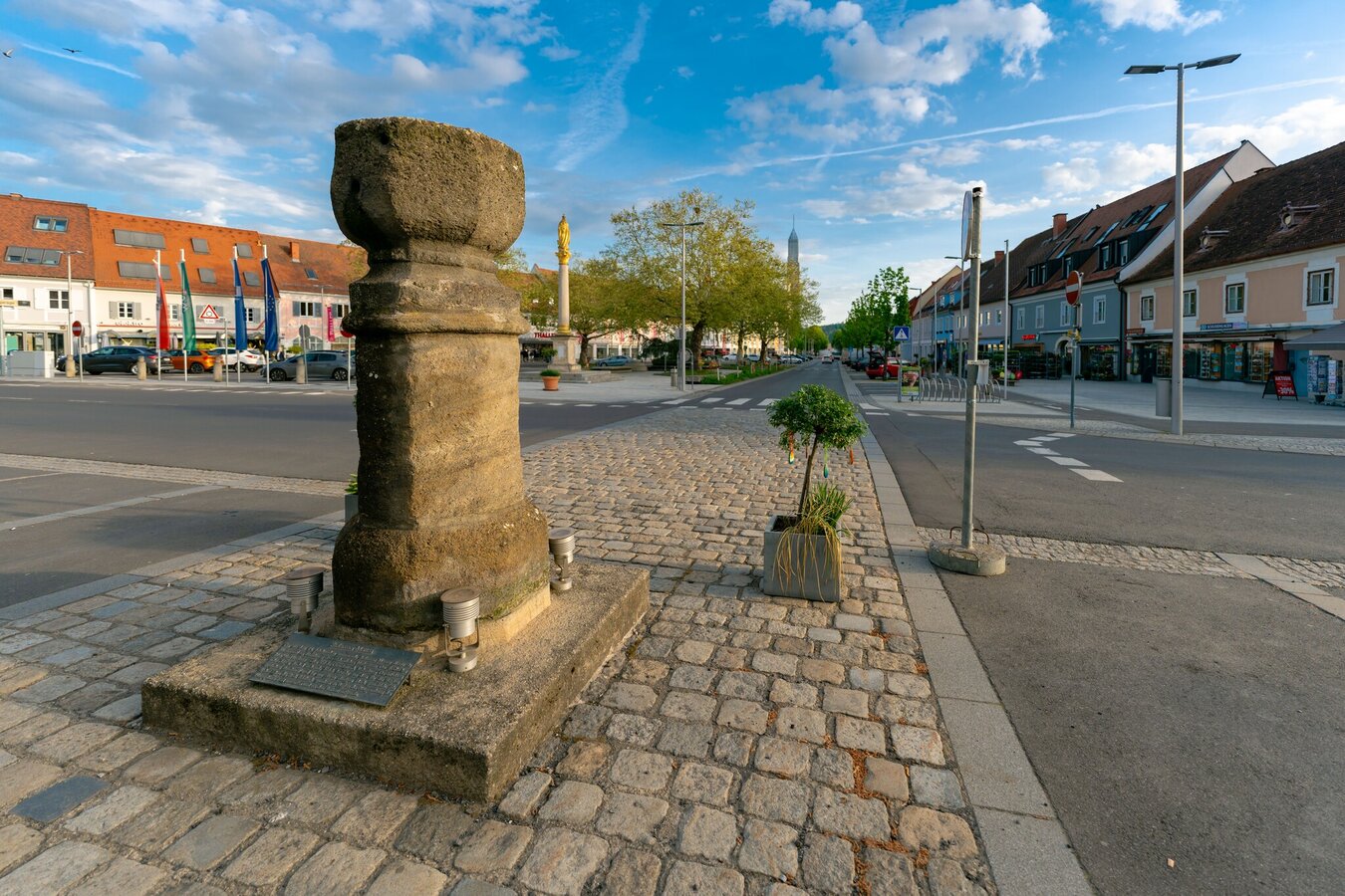 Am Hauptplatz steht die barocke Mariensäule (6) aus dem Jahr 1717.