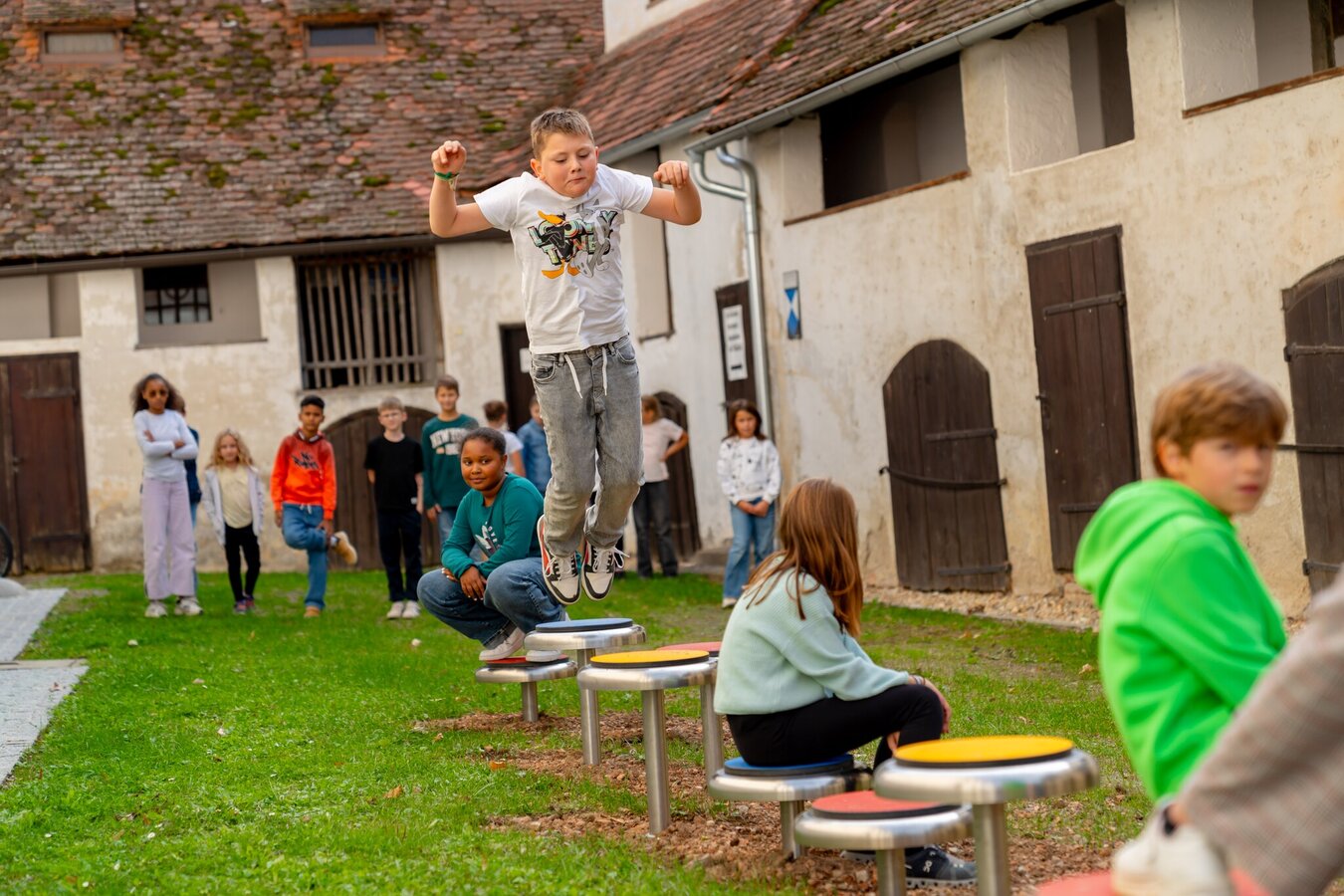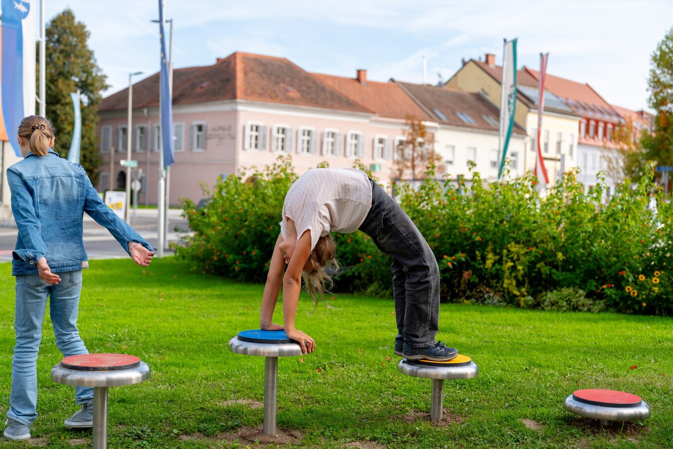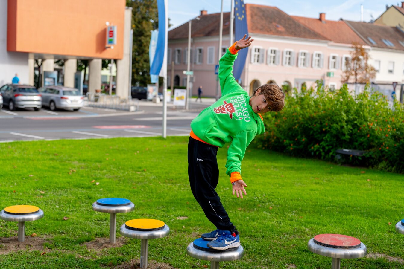 Noch mehr Trittsteine zum Balancieren direkt am Hauptplatz. -