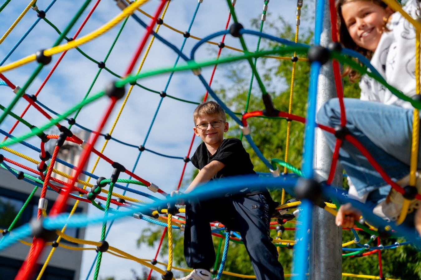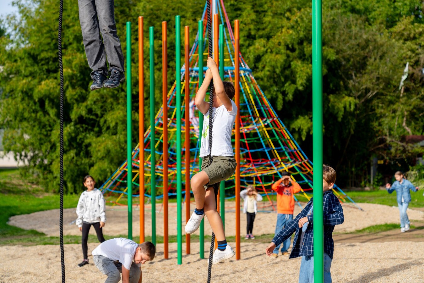 Im Sparkassenpark erwarten dich Schaukeln, Klettergeräte und ein riesiger Bewegungsparcours.