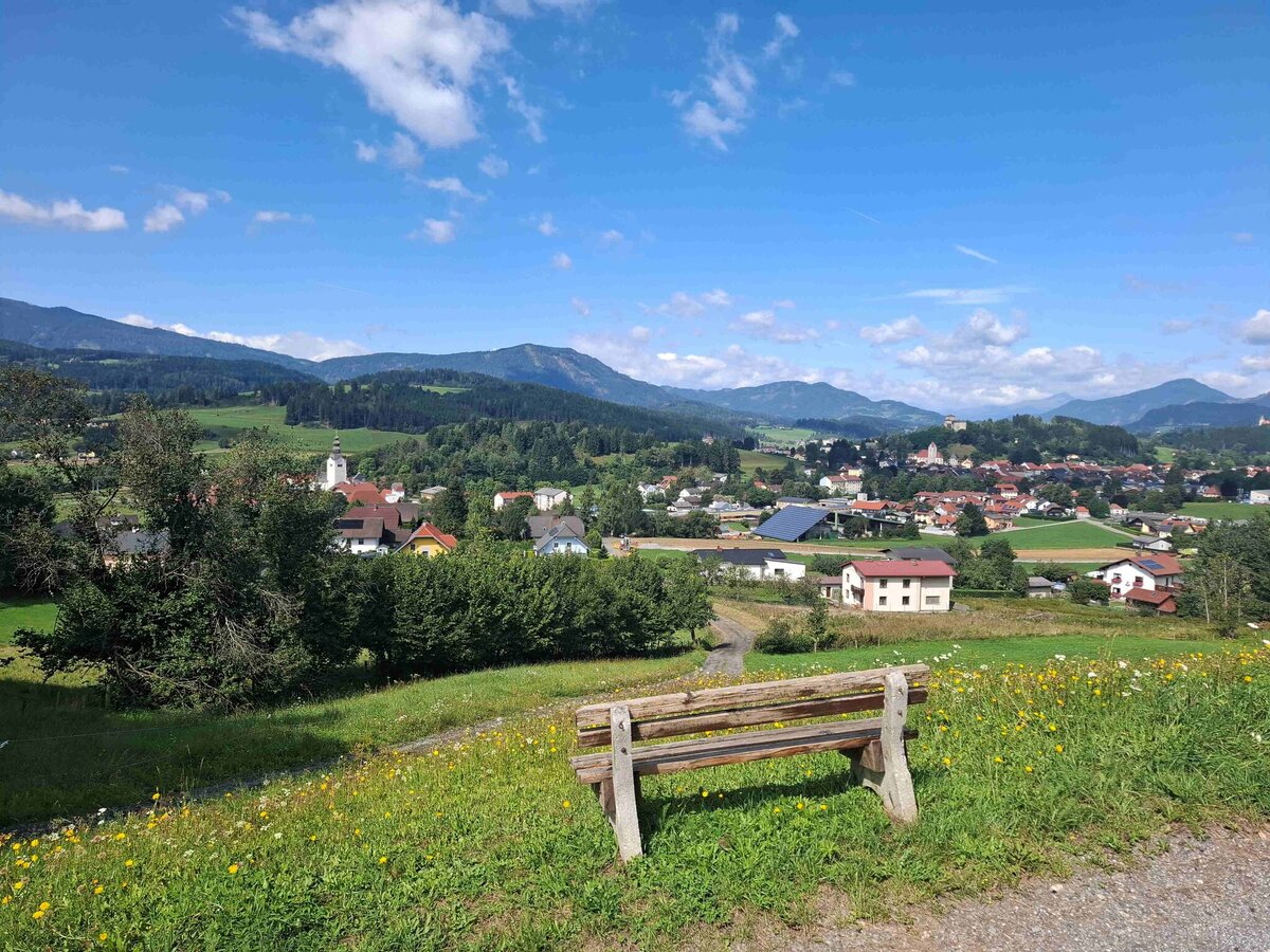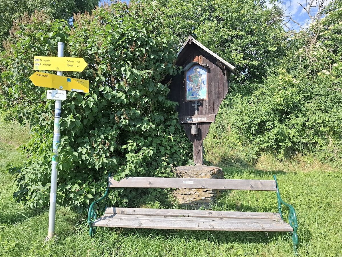 Wir gehen zur Pestsäule und weiter bis zum Ende des Hauptplatzes. Dort überqueren wir die Straße und gehen links und bei der nächsten Möglichkeit biegen wir rechts ab. Wir folgen der Marburger Straße und biegen dann links Richtung Schwimmbad ab. Beim Schwimmbad halten wir uns rechts und gehen bergaufwärts über Bischofsberg und vorbei am Martinikreuz nach St. Georgen bei Neumarkt. Dort kann nicht nur die Ruine der Georgi-Kirche besichtigt werden, sondern auch ihr ursprüngliches Aussehen kann anhand einer 3D-Animation erkundet werden.