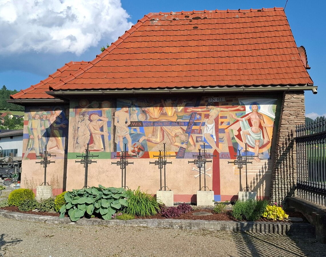 Am Weg zurück kann die Aussicht auf Neumarkt und St. Marein genossen und dabei die Sage von der Teufelsfichte angehört werden. Weiter geht der Rückweg über den Friedhof und vorbei an dem noch bestehenden Wehrturm und der Mauer. Beim Wehrturm biegen wir links ab und gelangen so zurück zum Ausgangspunkt.