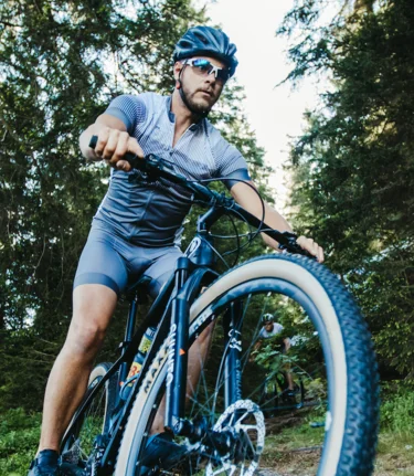 Mountainbikerinnen/Mountainbiker radeln immer so, dass sie weder sich selbst noch andere gefährden oder schädigen.