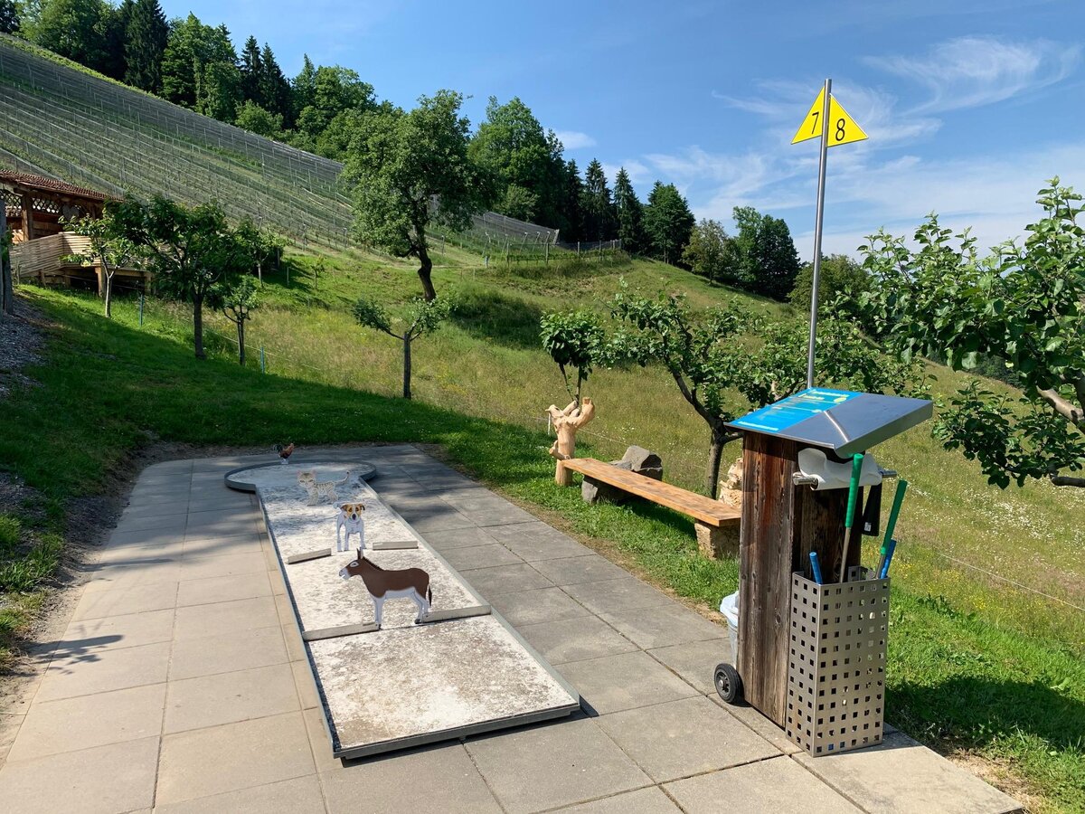 Die Mini-Golftour Leutschach ist ein einzigartiges Erlebnis, das Sie nicht verpassen sollten. Sie beginnt gegenüber vom Kniely Haus Leutschach, weiter Richtung Freibad und in den Ortsteil Schloßberg.