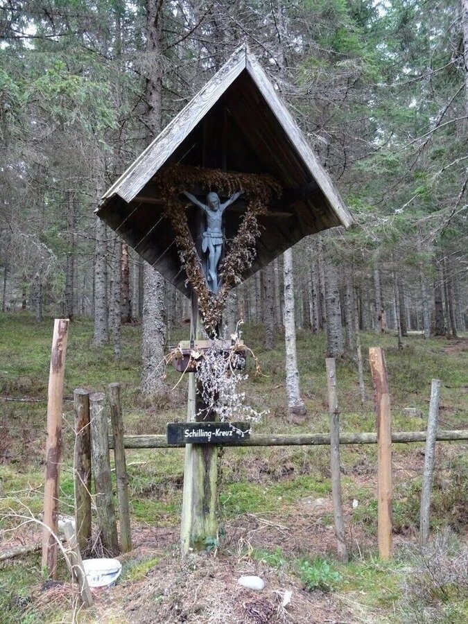 Auch für Sie wartet jetzt noch eine etwas größere Anstrengung. Denn der Weg steigt auf der letzten Etappe steiler an. Wenn Sie auf der rechten Seite das Schilling-Kreuz erblicken, wissen Sie, dass Sie bald ihr Ziel, den Absetzwirt erreichen. Hier schließt sich der Kreis. Eine wundervolle Wanderung durch die Wälder rund um den Rosenkogel geht zu Ende. Wenn Sie ihn diesmal nicht erklommen haben, sollten Sie unbedingt wiederkommen, um es nachzuholen. Denn oben wartet ein herrlicher Ausblick auf Sie.