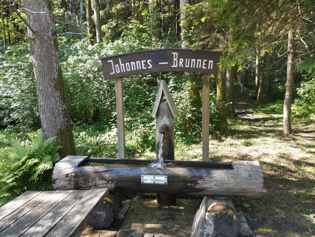 Im Ortskern bei der Pestsäule gehen Sie geradeaus weiter, wandern den schattigen Waldsaum entlang auf einer verkehrsarmen Asphaltstraße. Vorbei am Johannes-Brunnen kommen Sie zu einer Wanderwegkreuzung, der sogenannten Taucherkreuzung. Doch zuvor sollten Sie unbedingt die Chance für eine Rast am Johannes-Brunnen nutzen. Der Rastplatz bietet die Chance neue Kraft für die restliche Strecke zu sammeln und eine kleine Jause aus dem Rucksack einzunehmen. Das Wasser im Brunnentrog ist herrlich erfrischend.